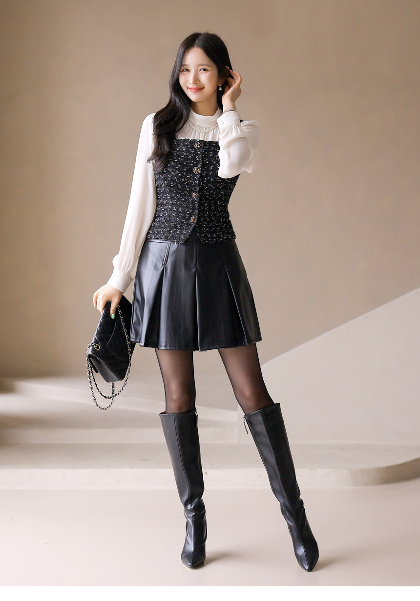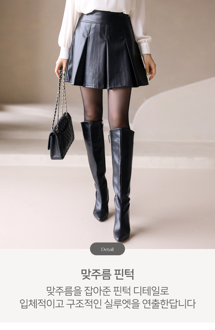 엔지나 에코 레더 맞주름 플리츠 미니 치마 바지