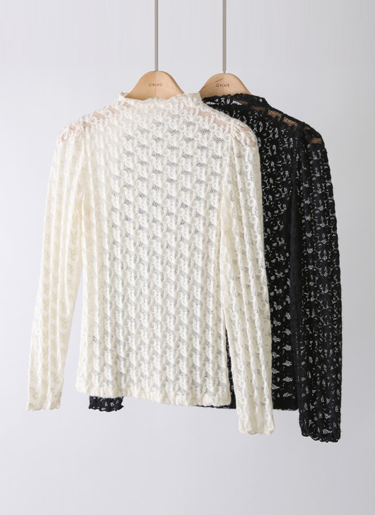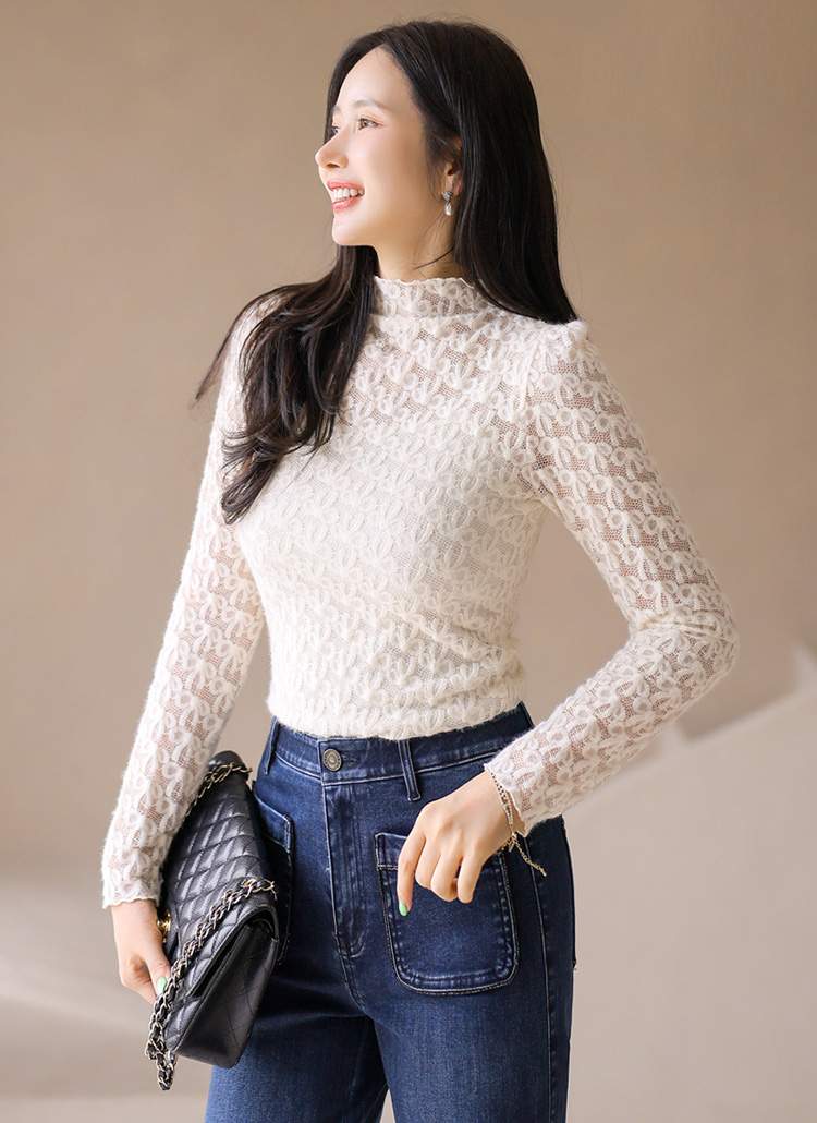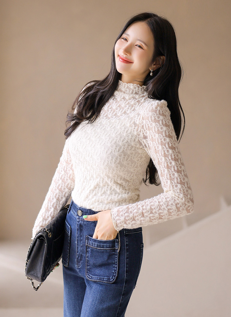 [LouisAngel] 포니 리본 포근 날개사 기모 레이스 반하이넥 블라우스 티