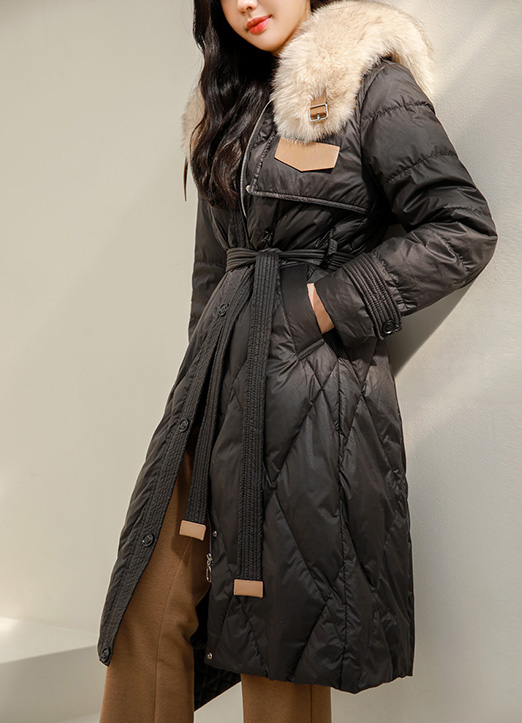 몽벨르 벨티드 탈부착 리얼 라쿤퍼 오리털 100% 롱 패딩