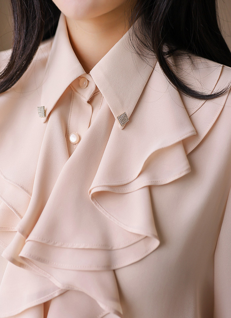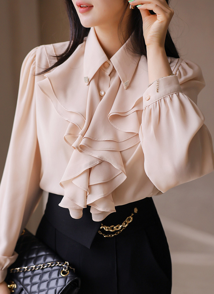 리사벨 이중 러플 볼륨 드레이프 쥬얼 카라 블라우스