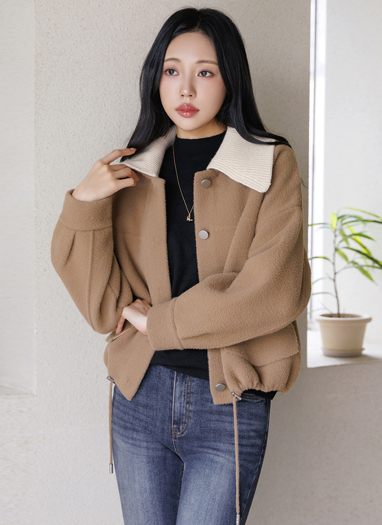 탈부착 가능한 니트 카라가 돋보이는 자켓이에요 :)