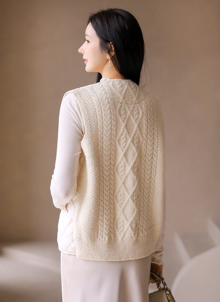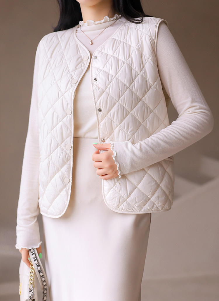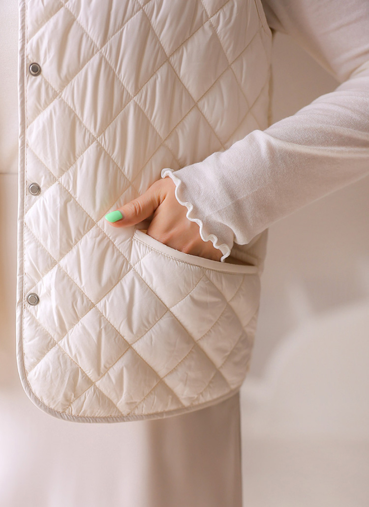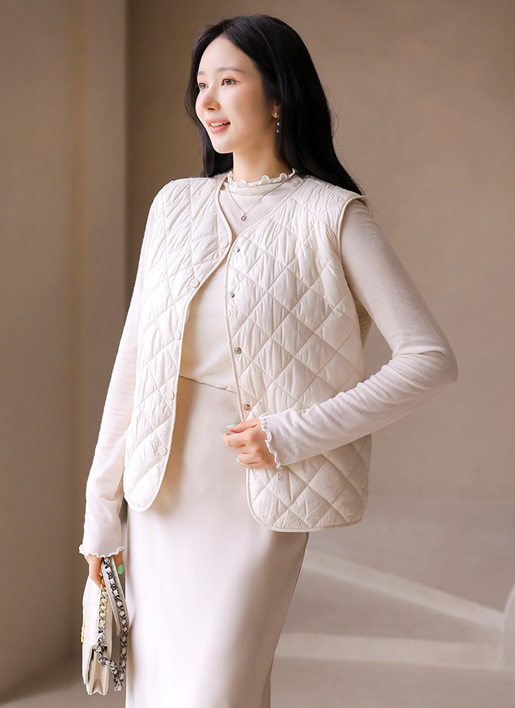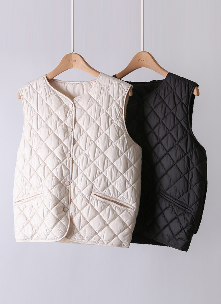 스네터 니트 배색 다이아 퀄팅 경량 웰론 패딩 조끼 베스트