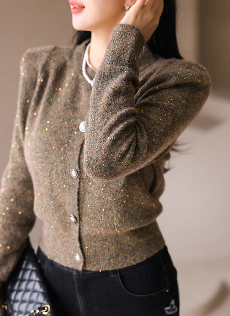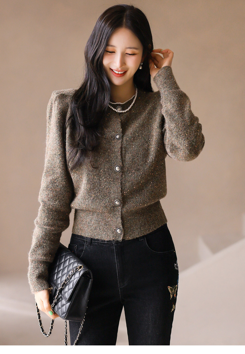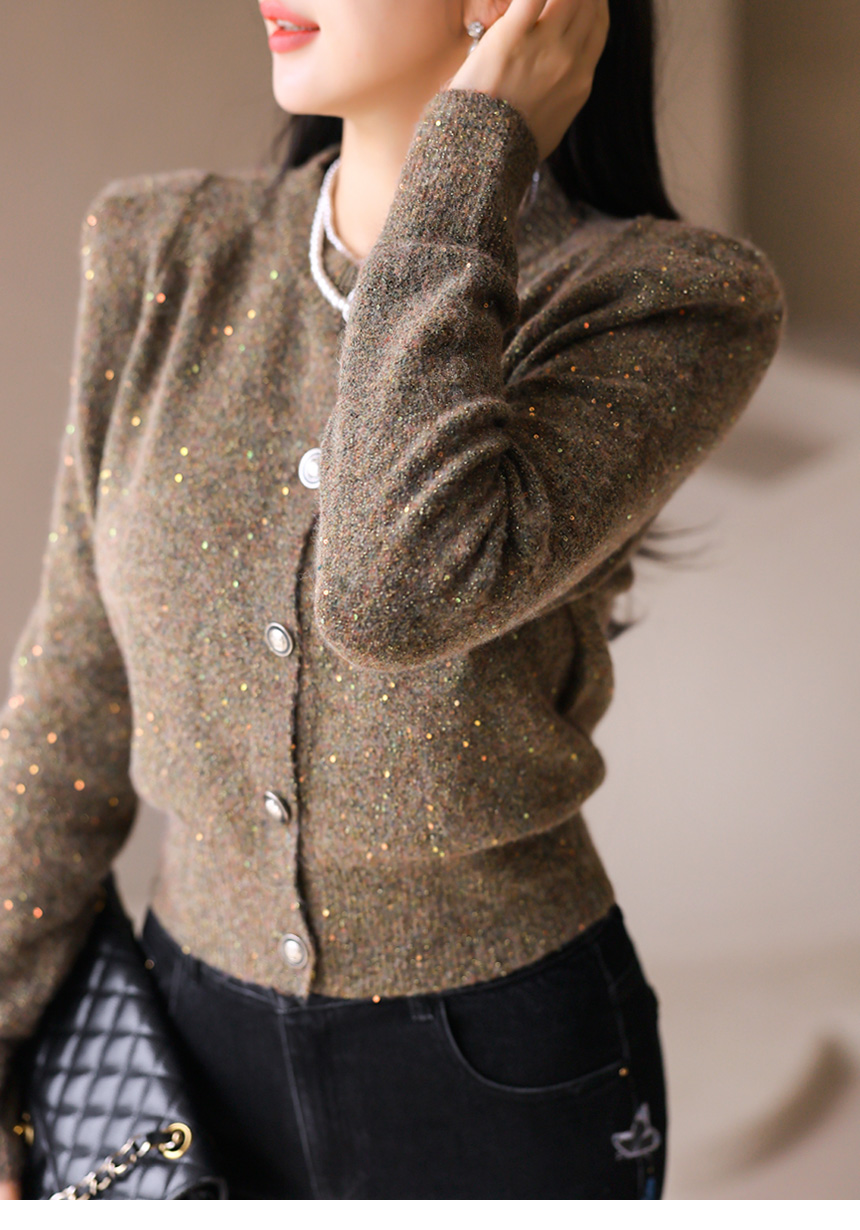 미스티 오로라 펄 스팽글 포근 울 블렌딩 보카시 니트 가디건