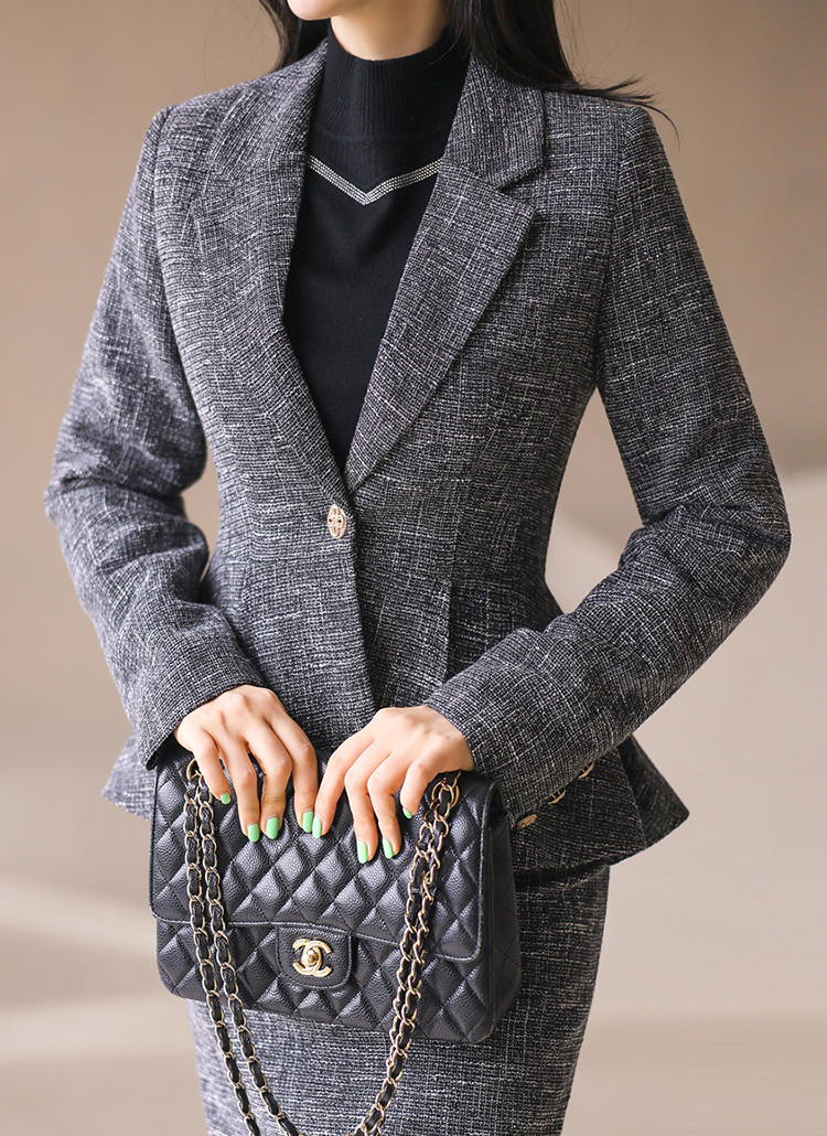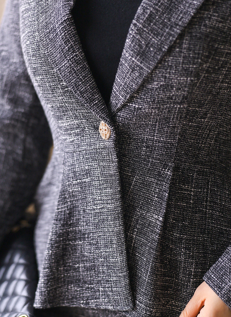 클래식한 테일러드 카라와 원버튼 디자인이 만나