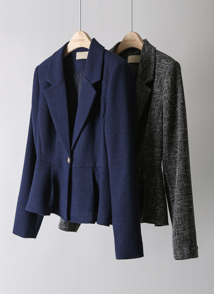 레베니 슬림 원버튼 보카시 테일러드 페플럼 자켓