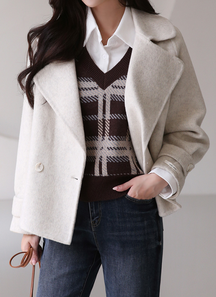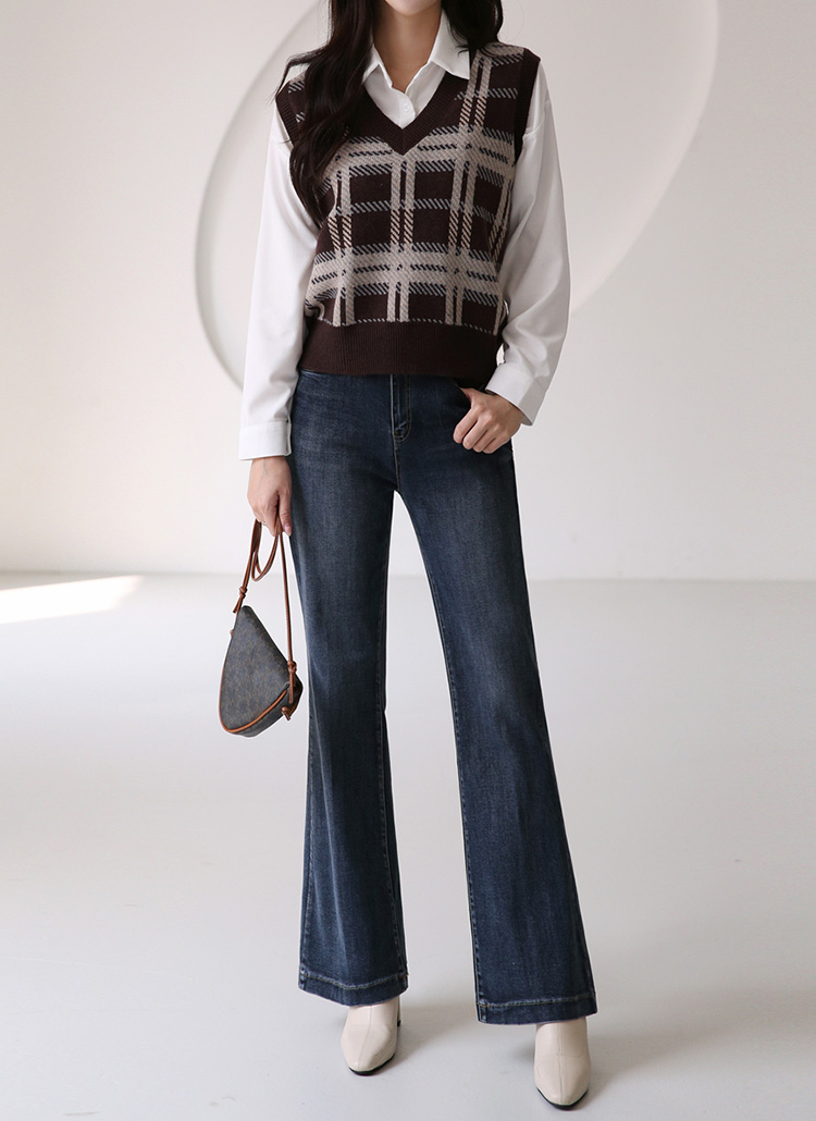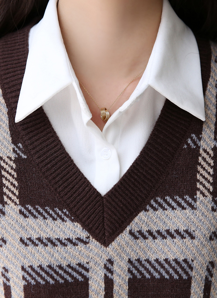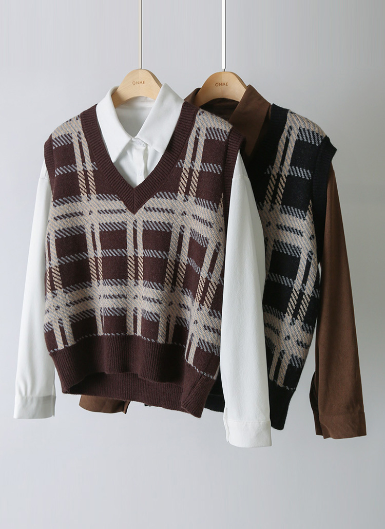 니트 베스트는 체크 패턴으로 포인트를 주어
