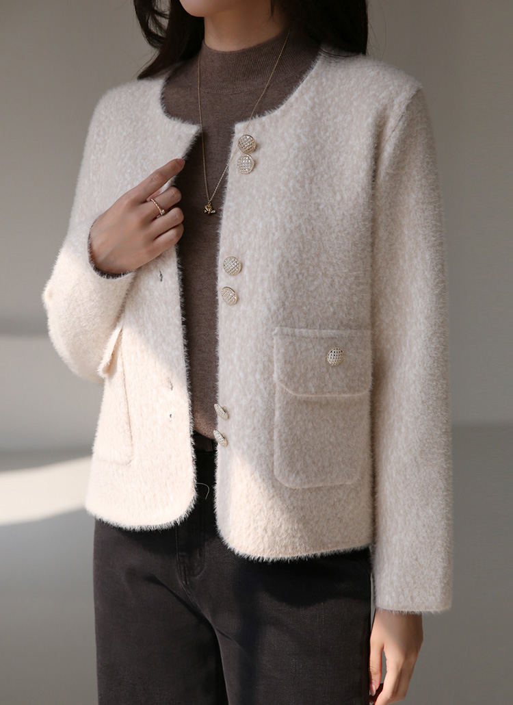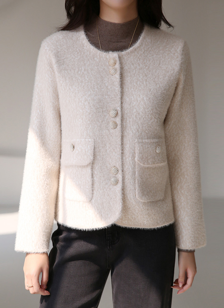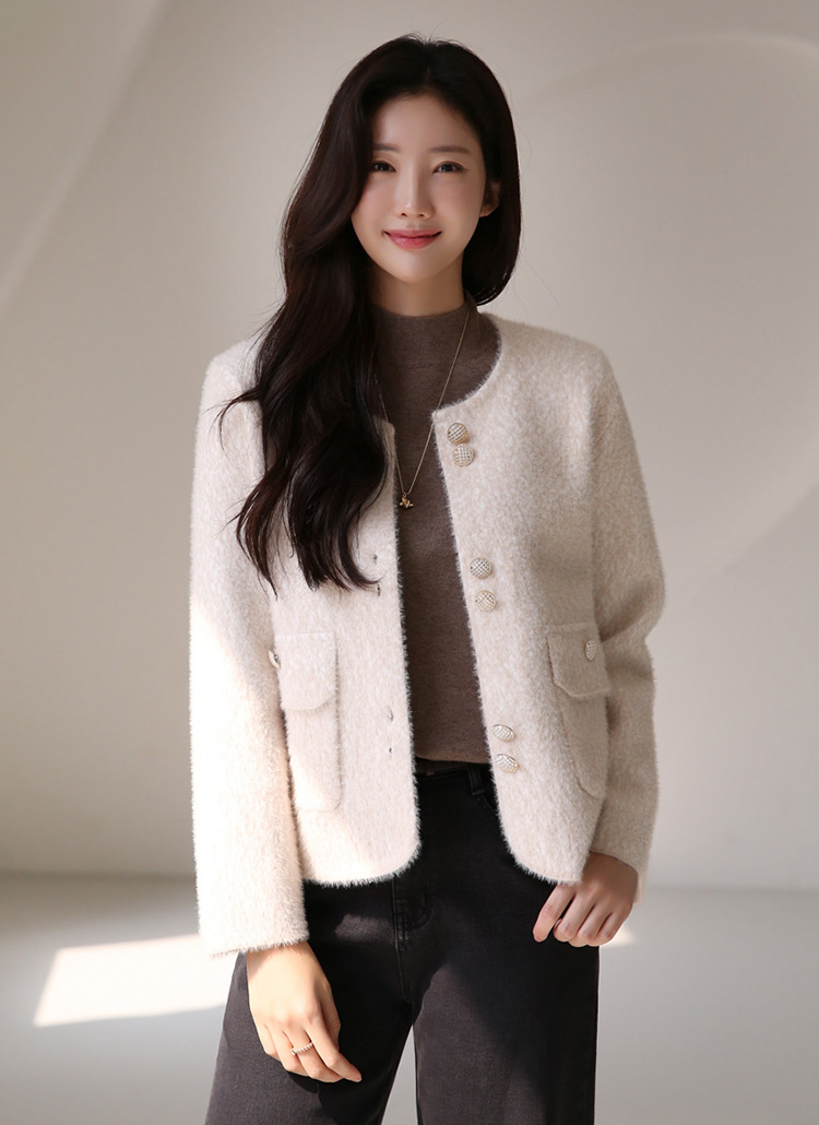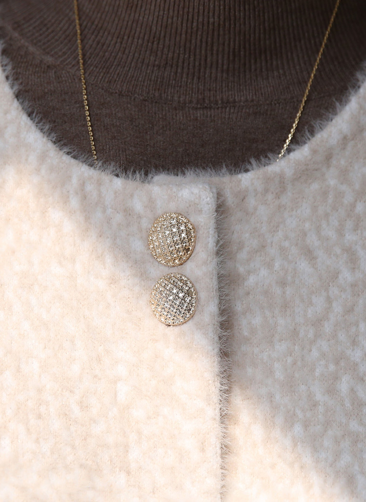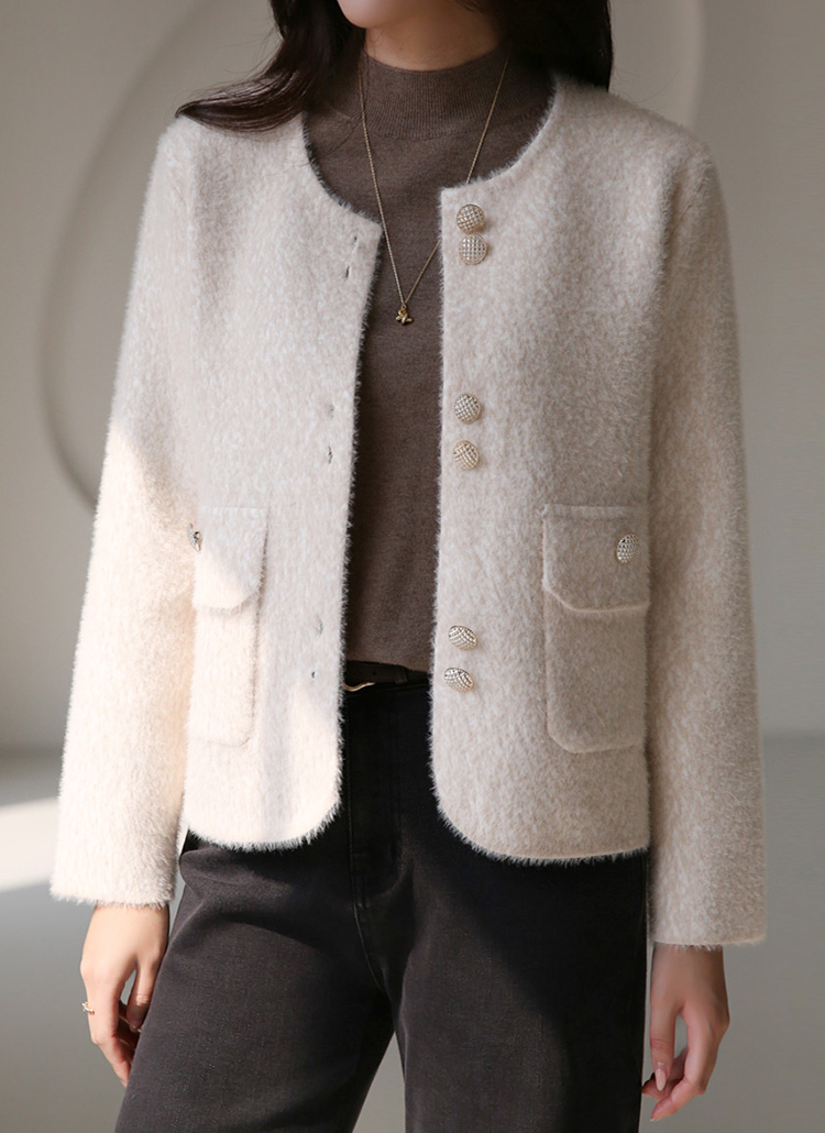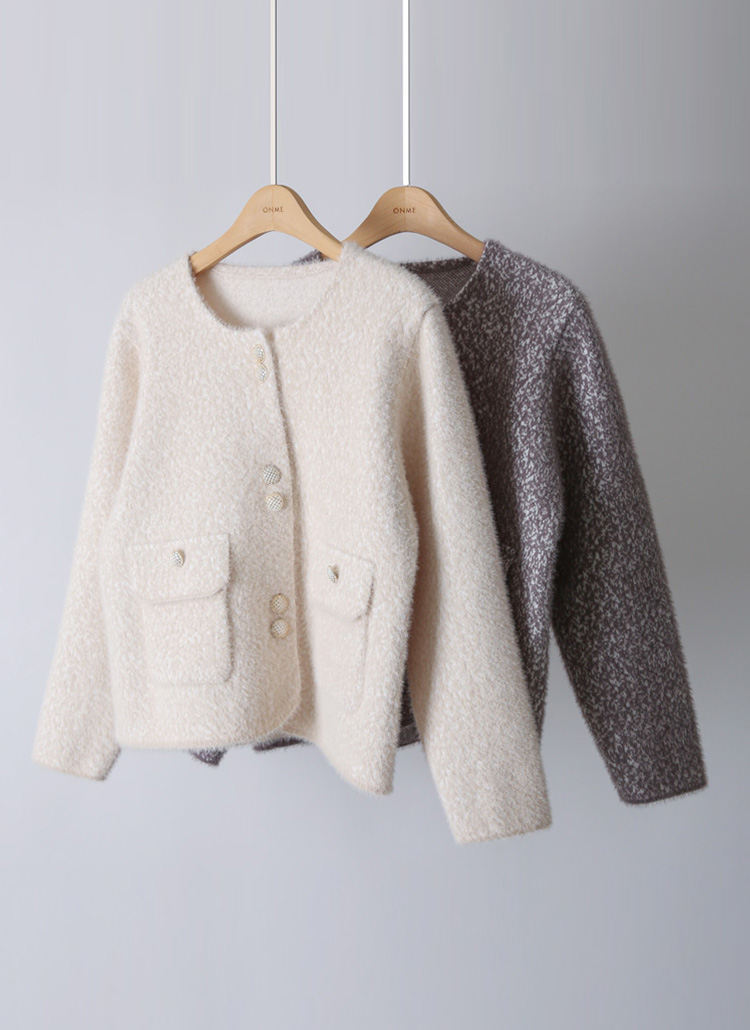 로어블 포근 날개사 퍼 더블 골드버튼 가디건 자켓