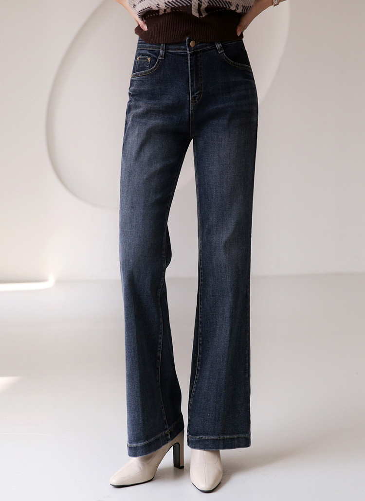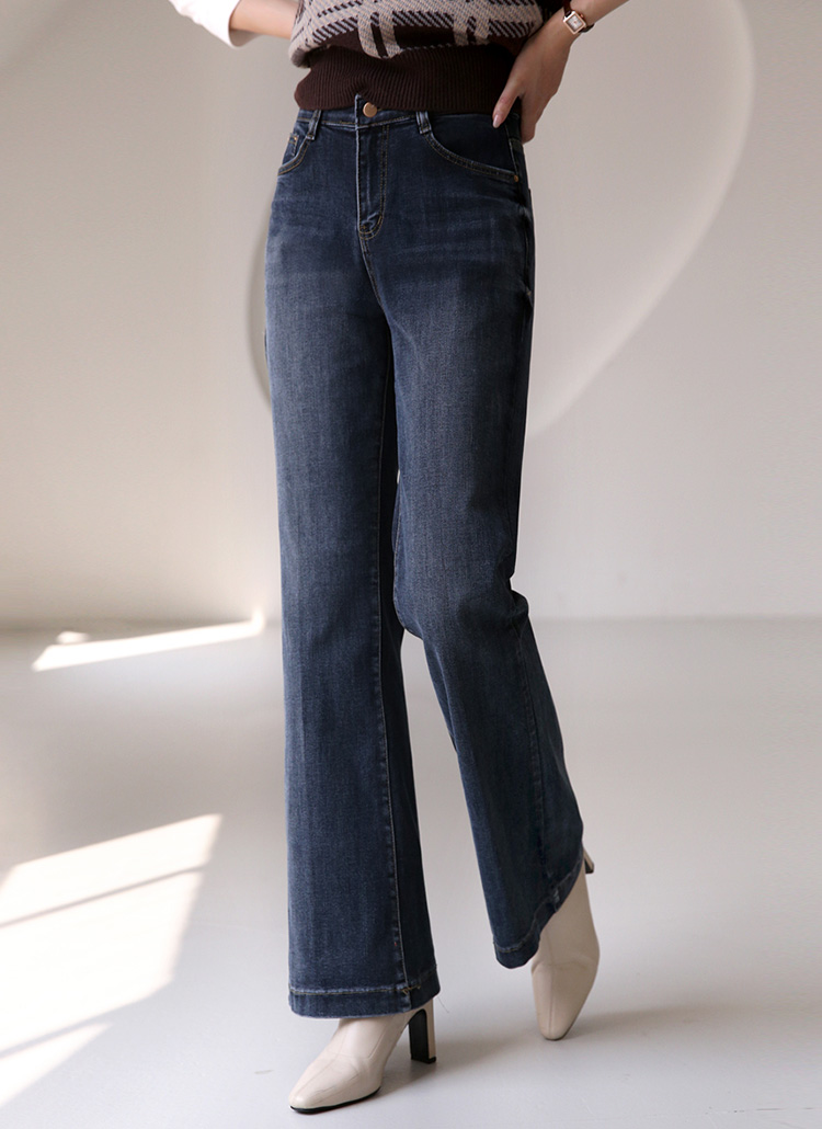 다크블루 빈티지 워싱 레직기 롱 부츠컷 데님 팬츠