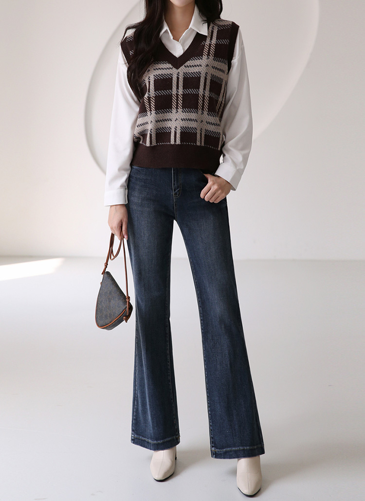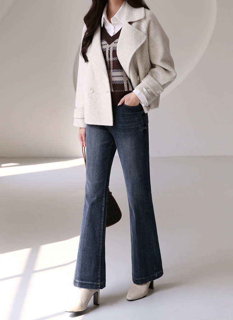 다크블루 컬러에 빈티지 워싱이 더해진 롱 부츠컷 데님 팬츠에요 :)
