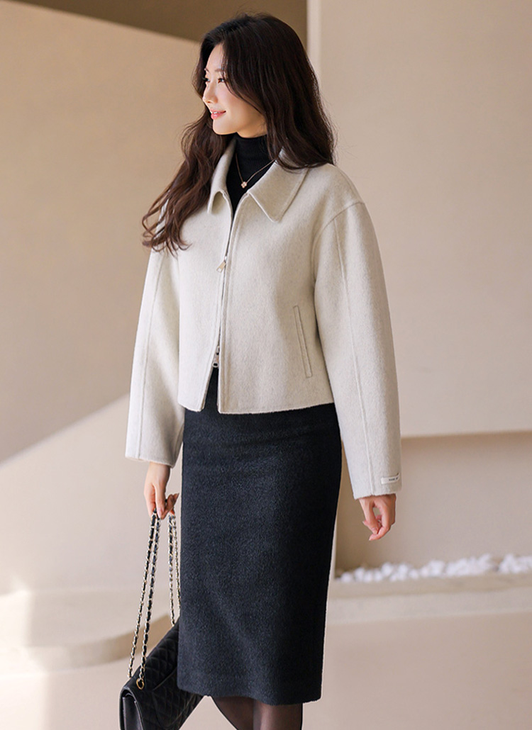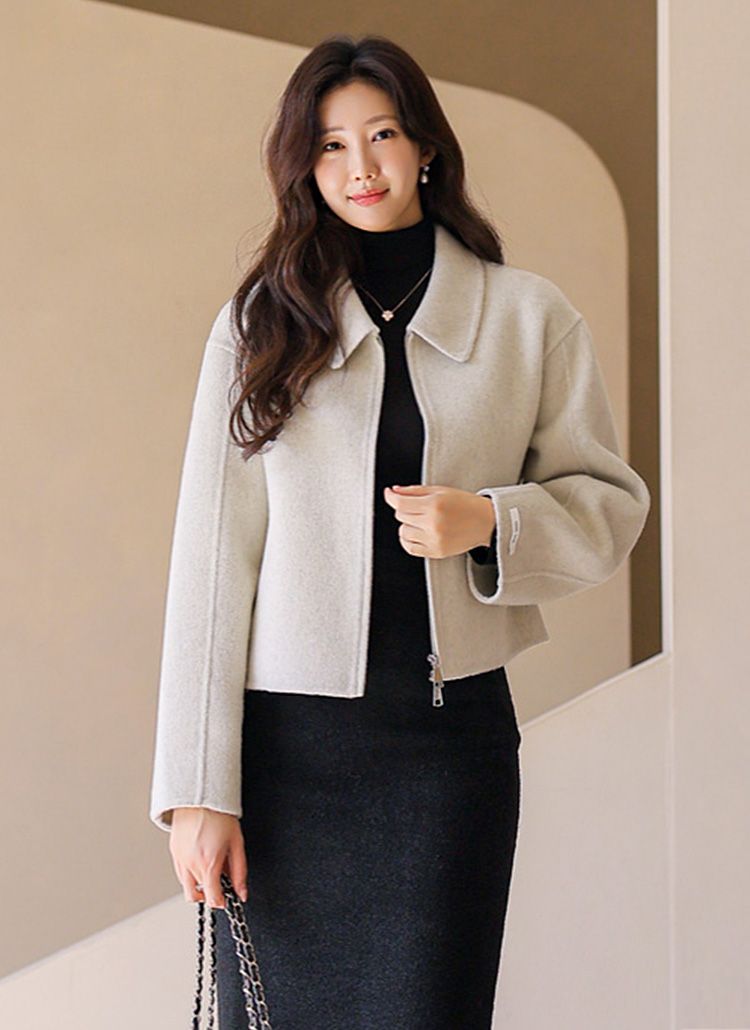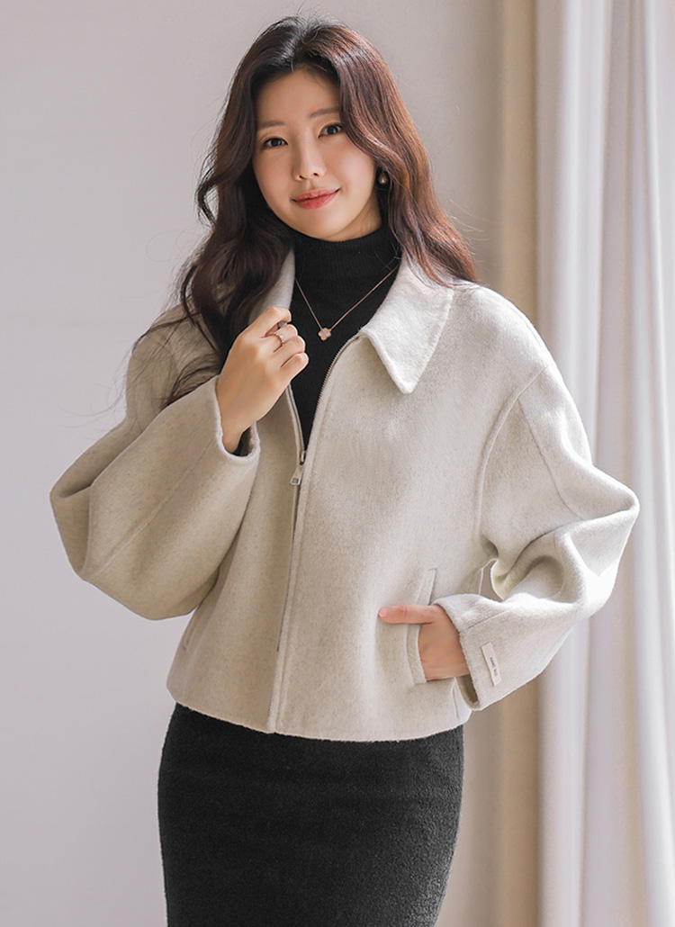 루디아 포근한 울 블렌딩 핸드메이드 2WAY 집업 숏 자켓