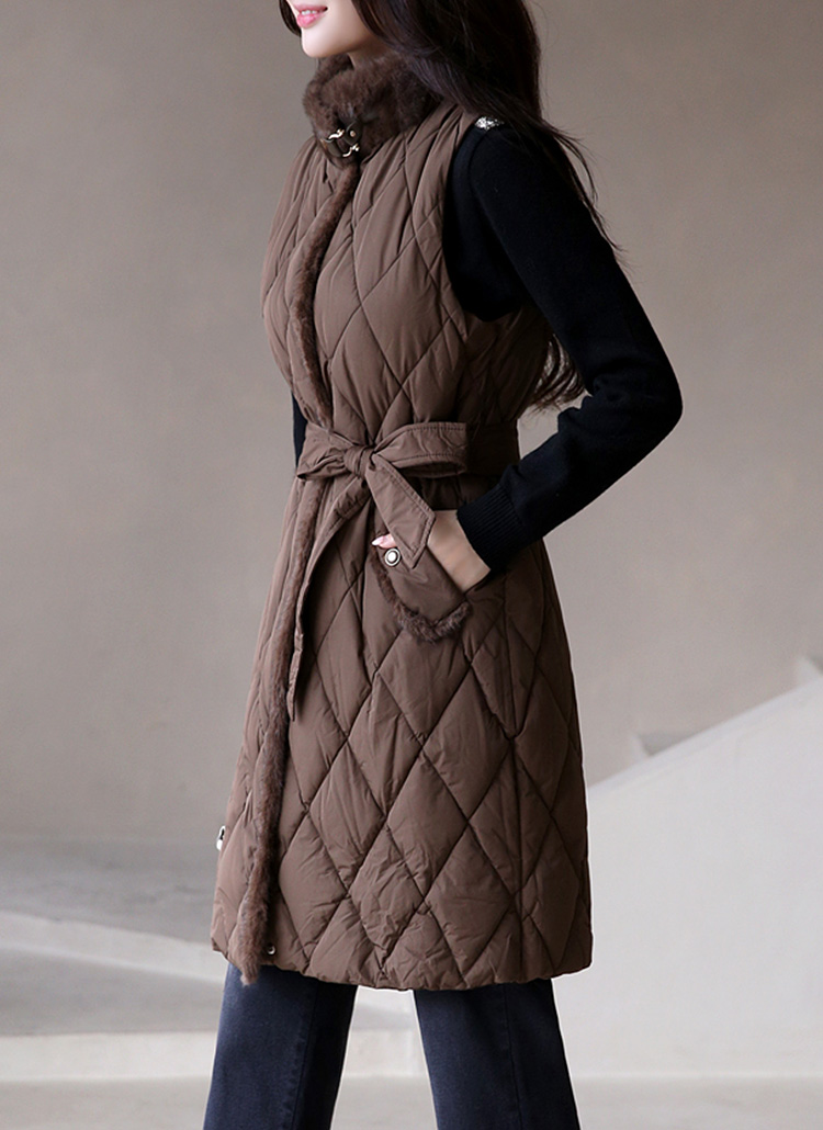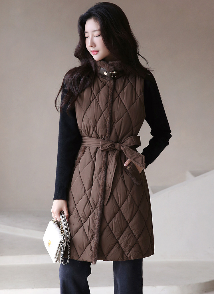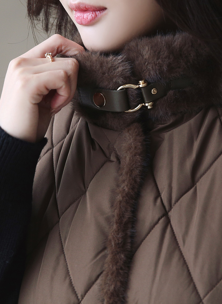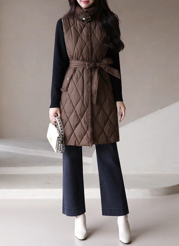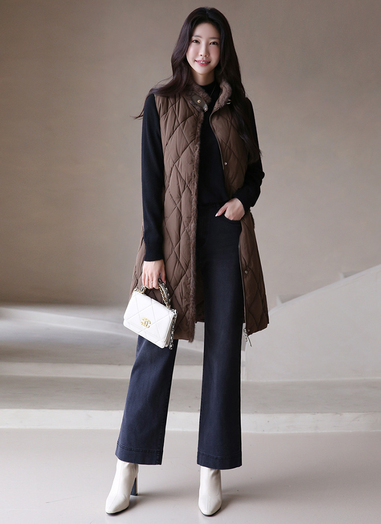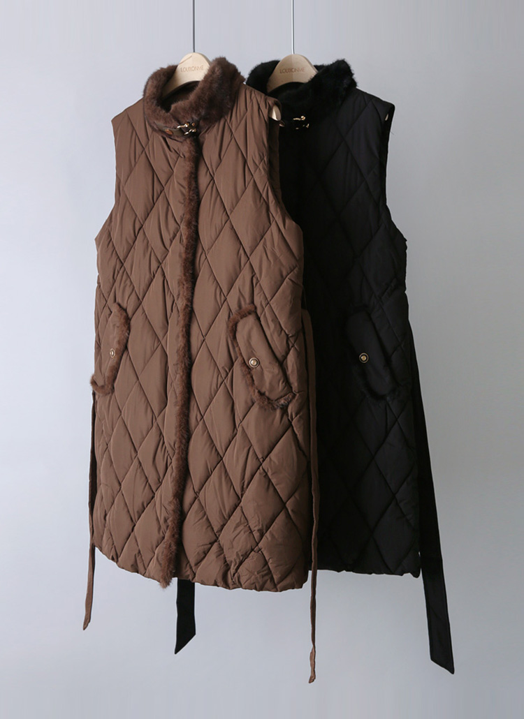 퍼 트리밍 하이넥 버클 조끼 베스트 패딩 점퍼