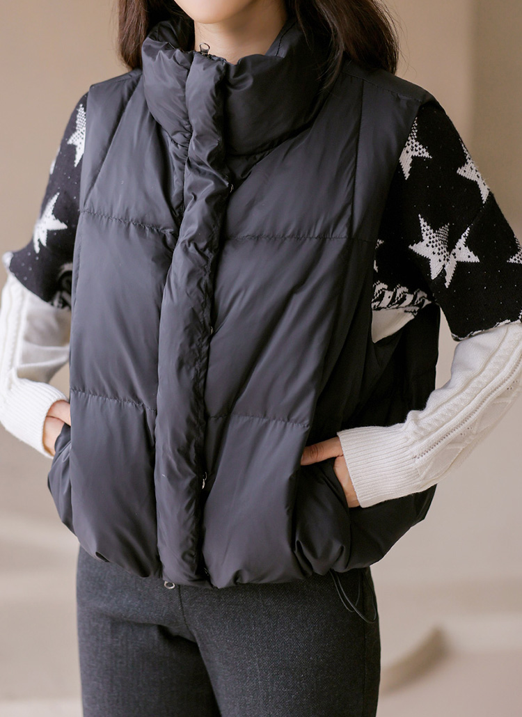 로이빈 세미 오버핏 밑단 스트링 가볍고 따뜻한 오리털 패딩 조끼 베스트