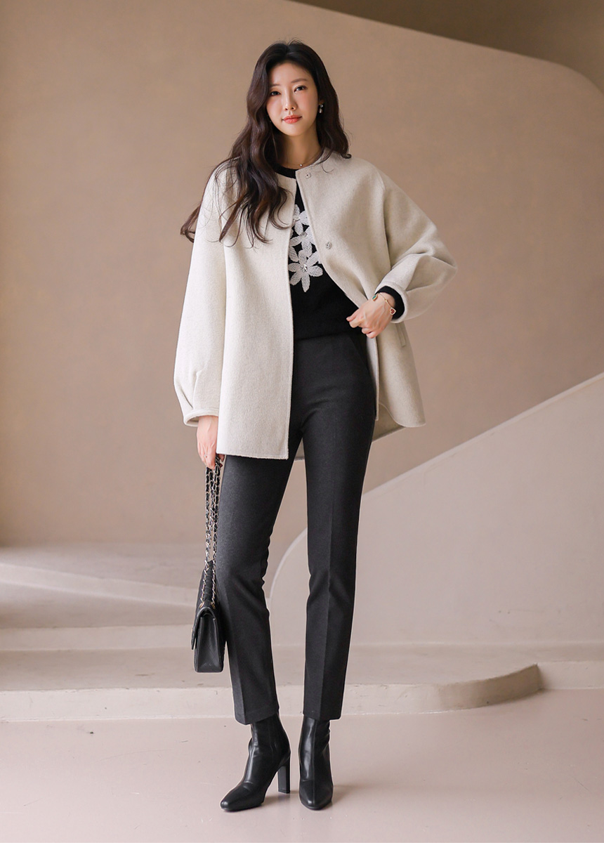 군더더기 없이 깔끔한 실루엣으로 다리라인을 길고 곧게 연출해주는 세미 일자 팬츠에요