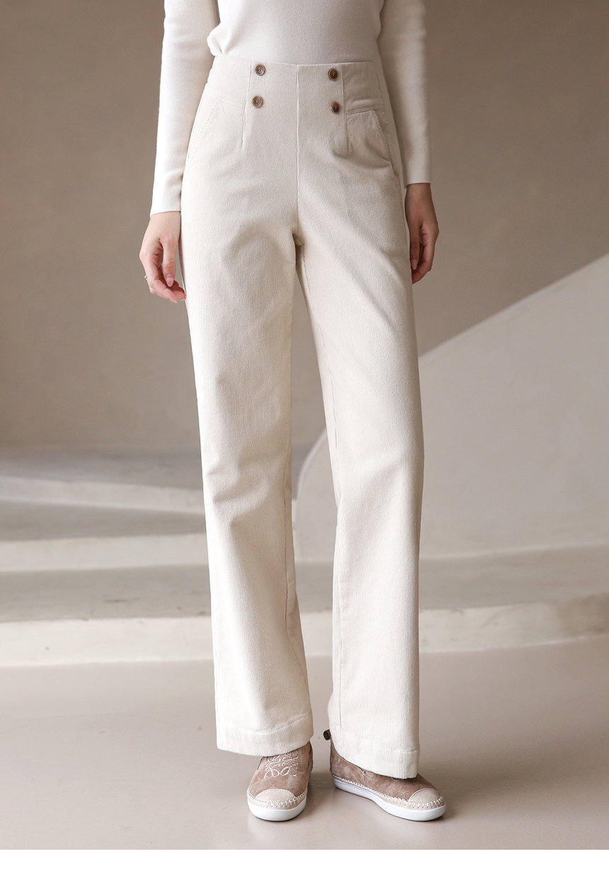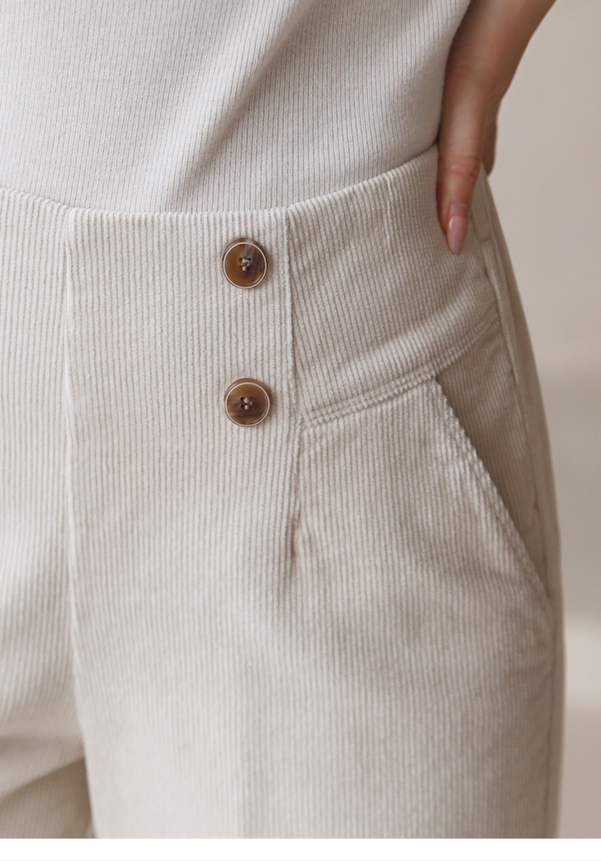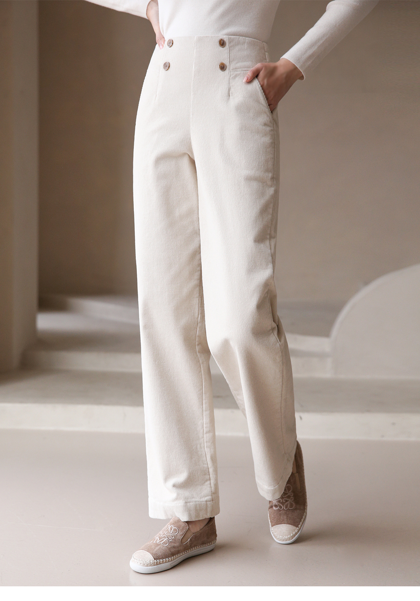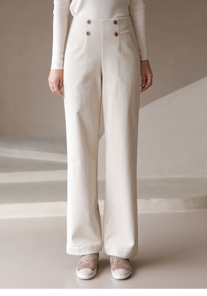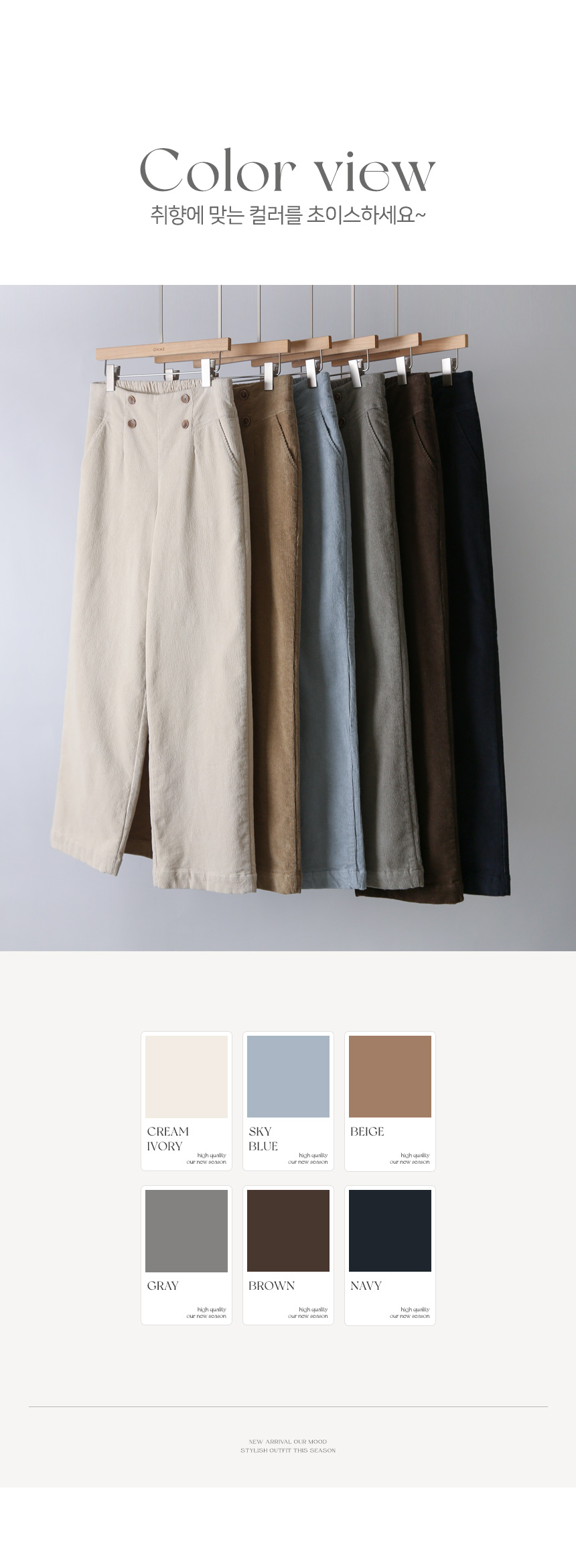 브레든 더블버튼 뒷밴딩 기모안감 코듀로이 코튼 와이드 팬츠