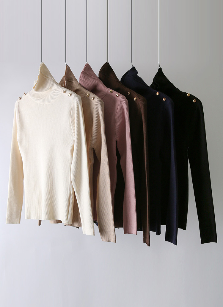 베니즈 어깨 견장 골드 버튼 슬림 골지 폴라 니트