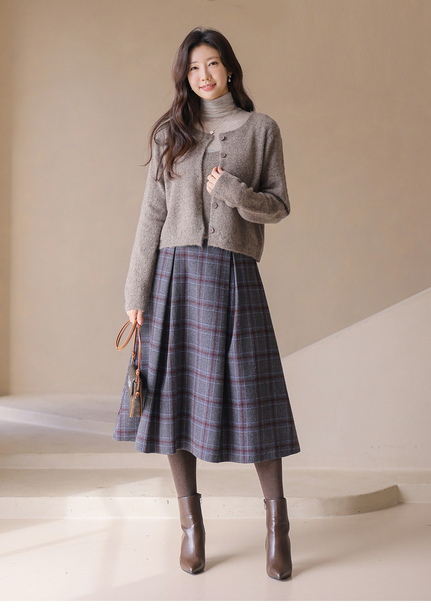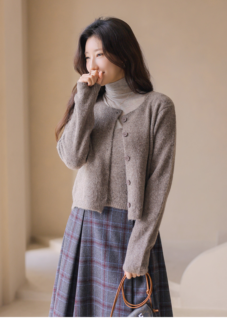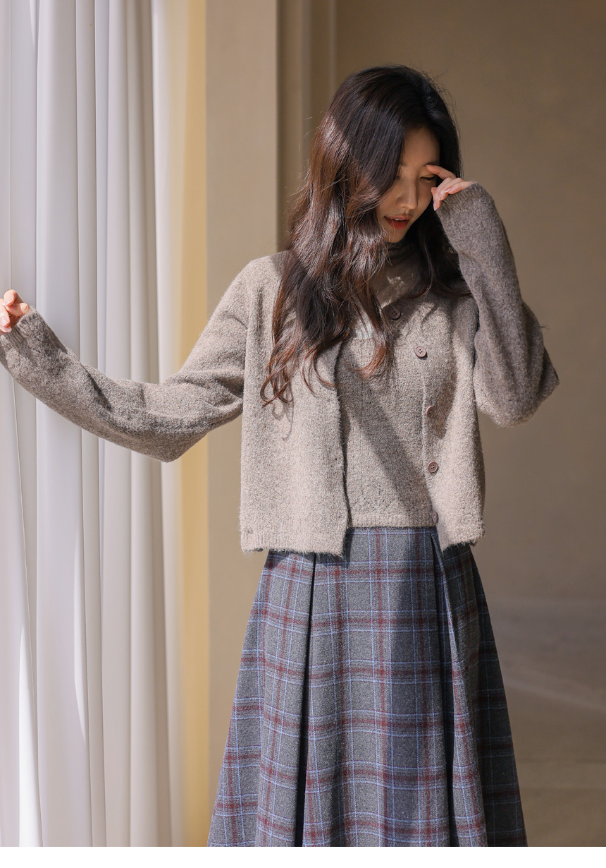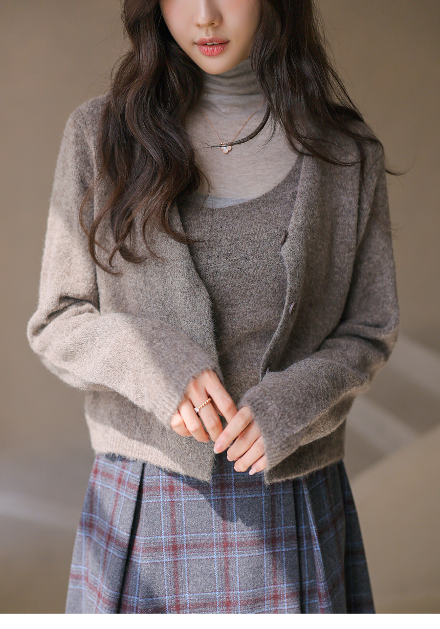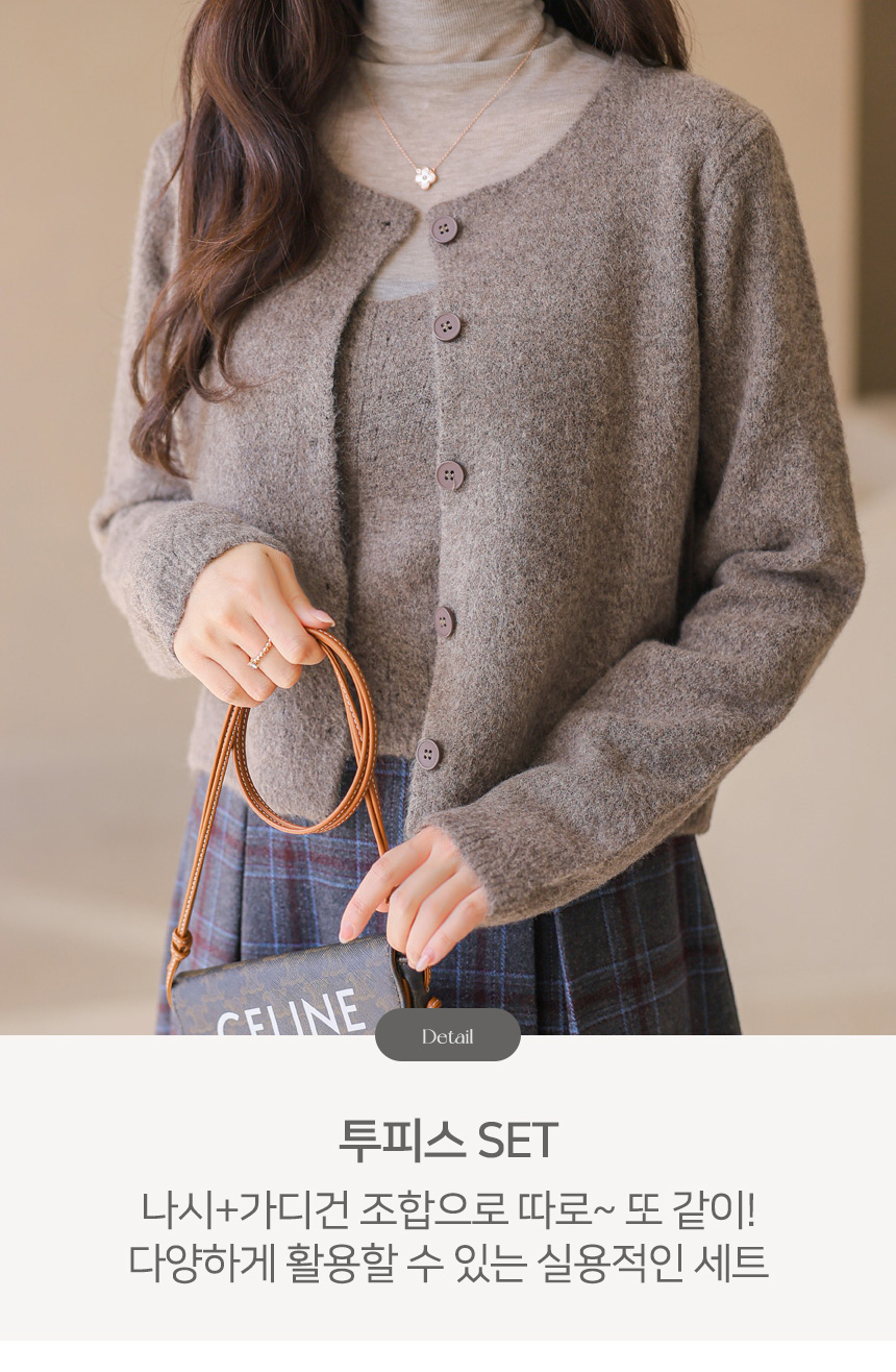 클라라 울 블렌딩 포근 터치감 헤어리 니트 조끼 가디건 투피스 세트