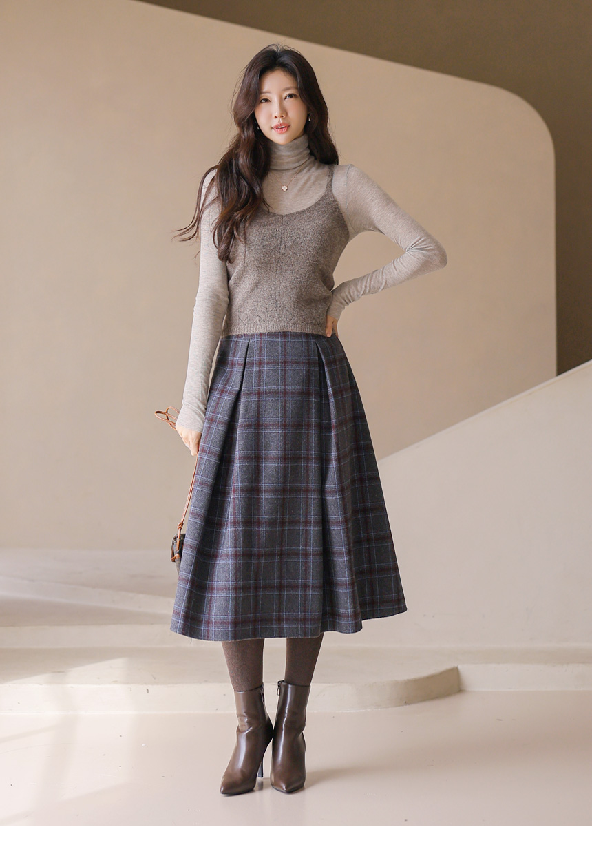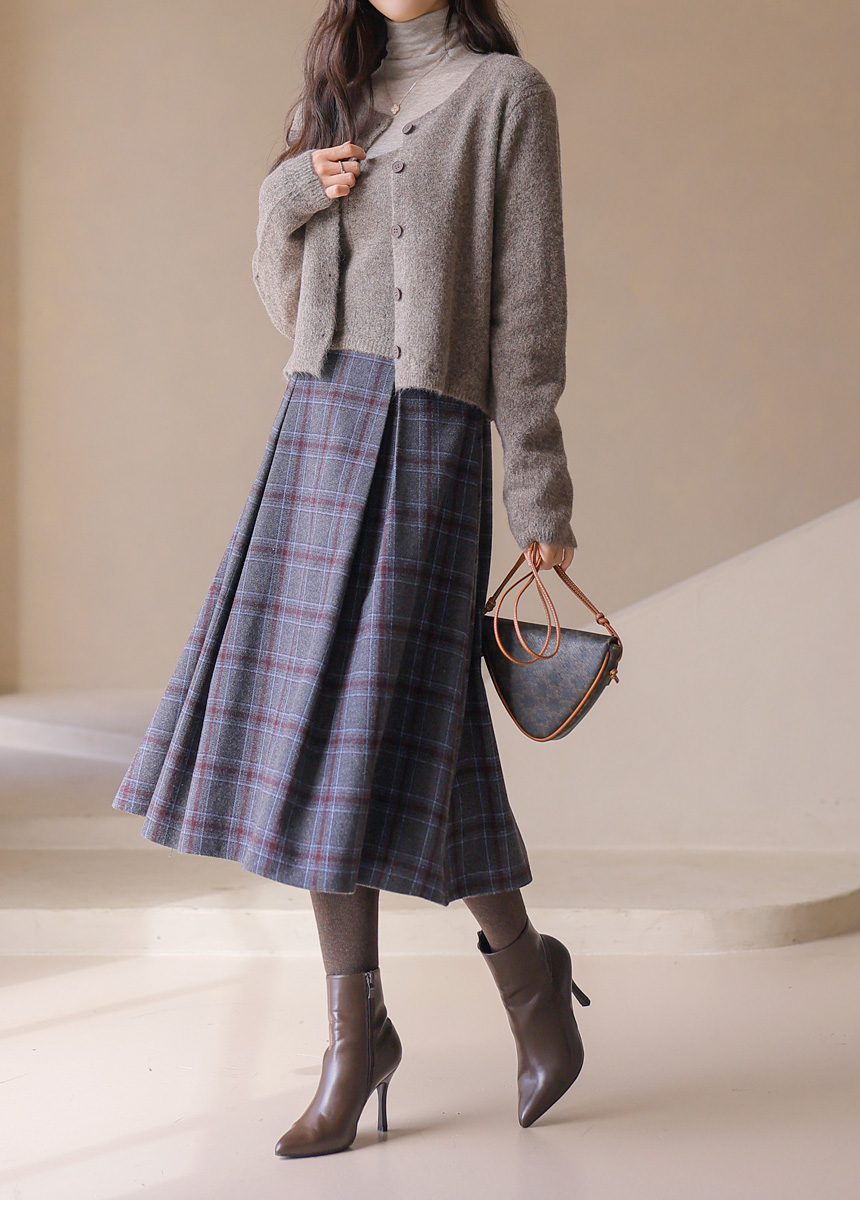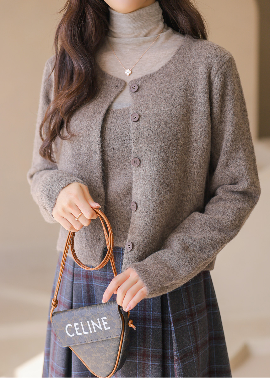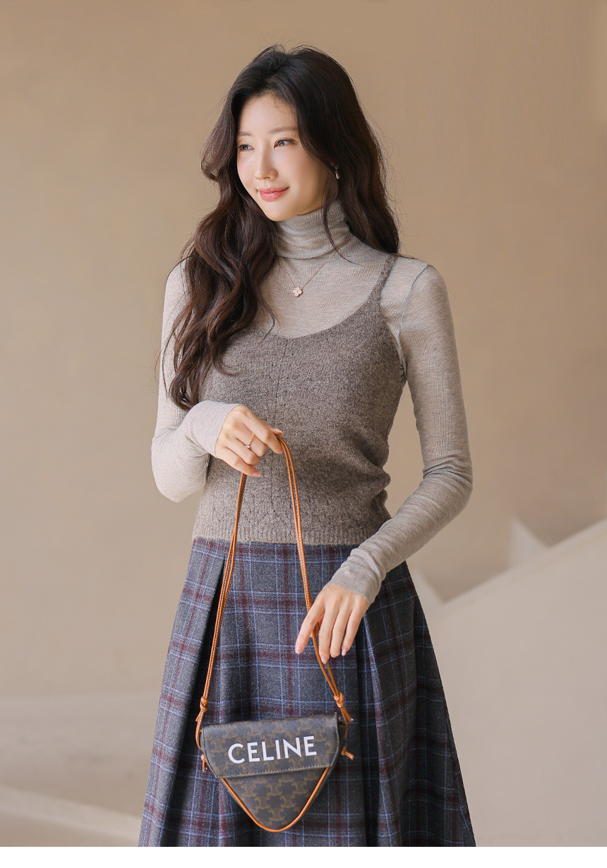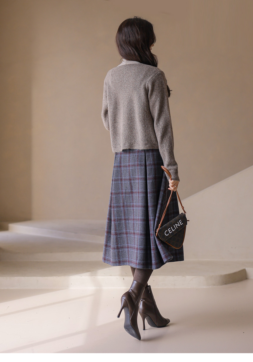 클라라 울 블렌딩 포근 터치감 헤어리 니트 조끼 가디건 투피스 세트