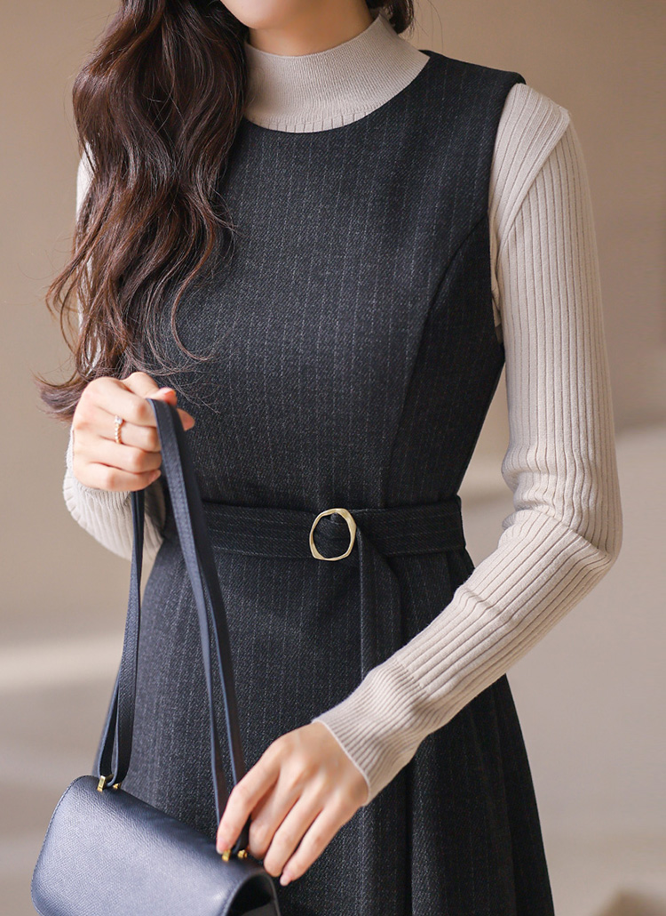 클래식한 스트라이프 패턴과 세련된 버클 벨트로 포인트를 주고
