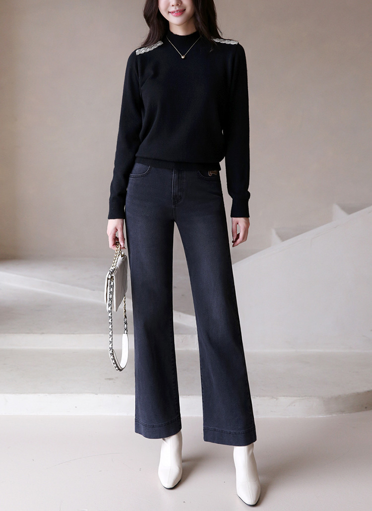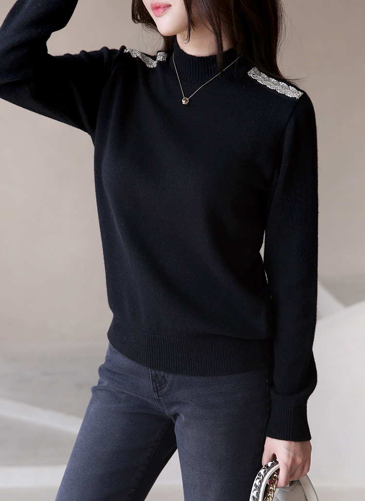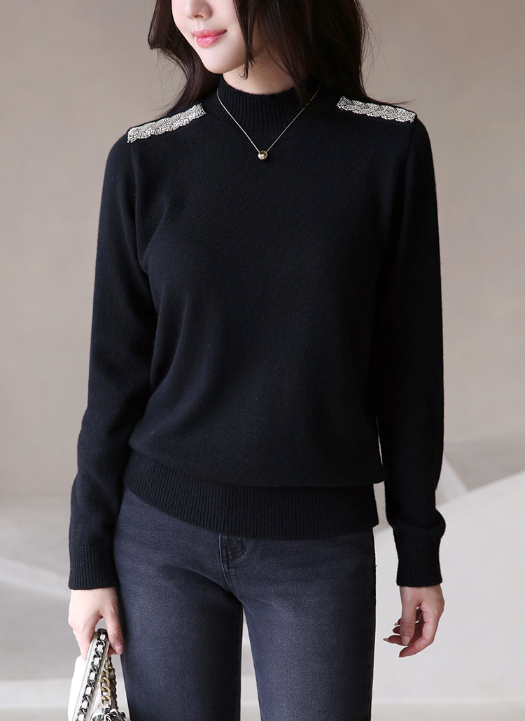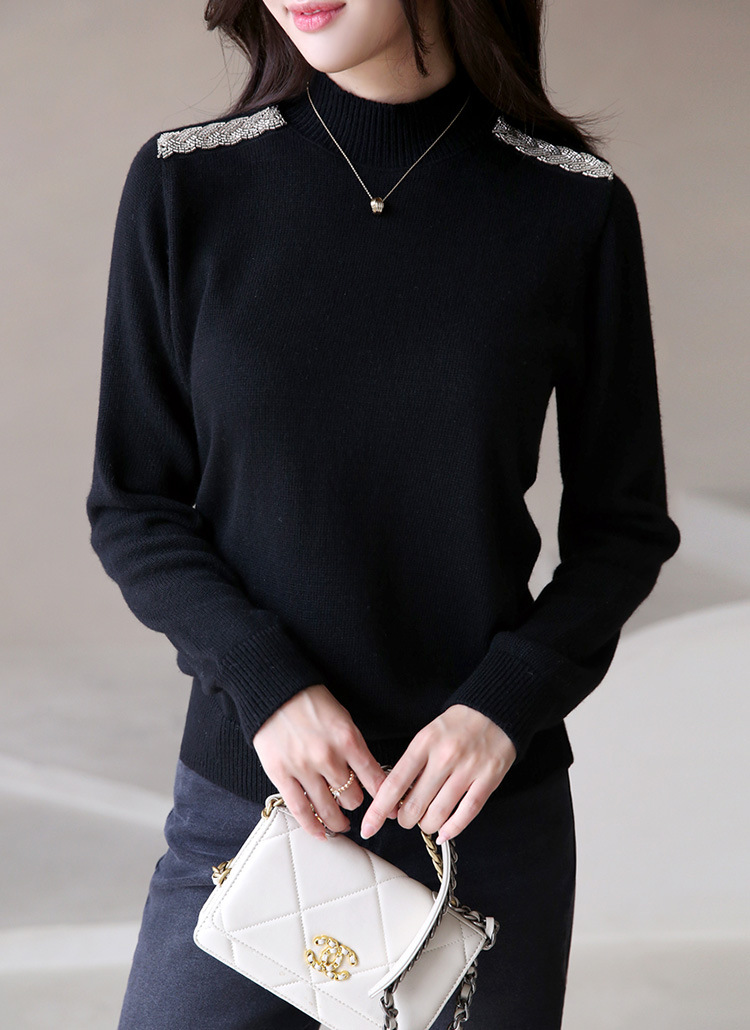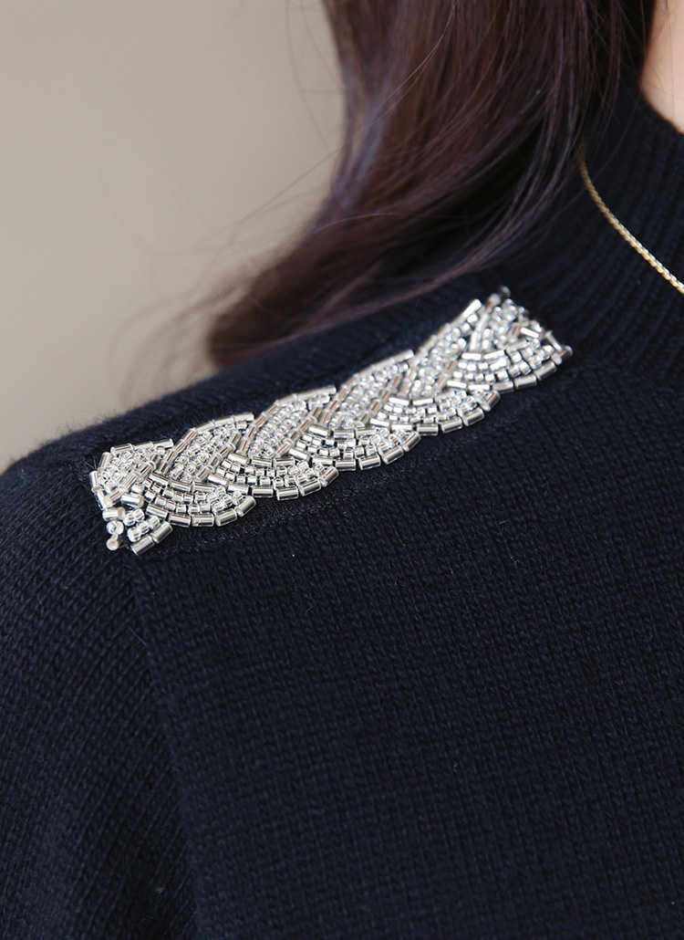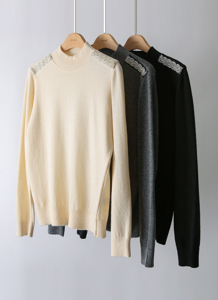 브루엘 비즈 견장 울 캐시미어 반목 폴라 니트