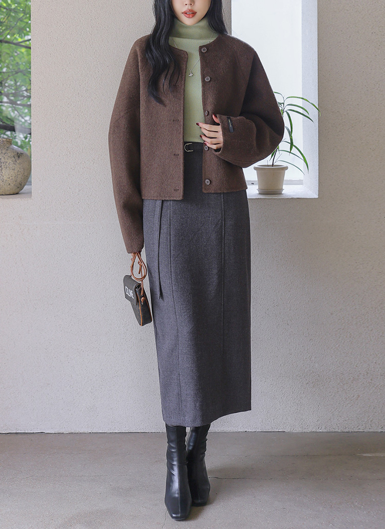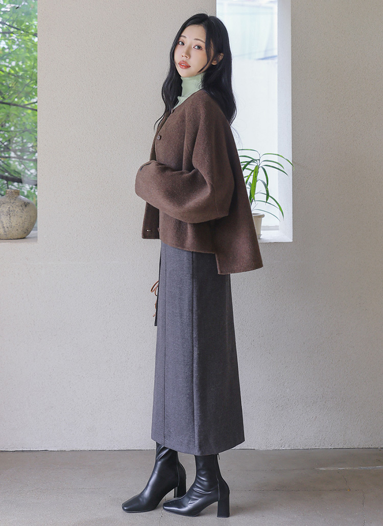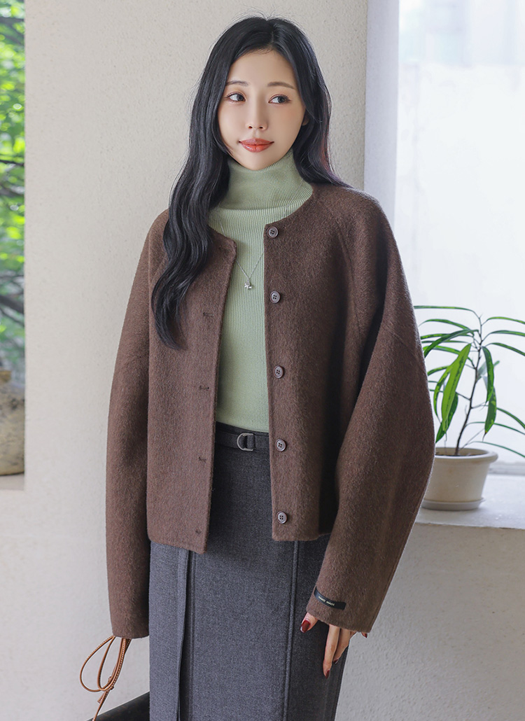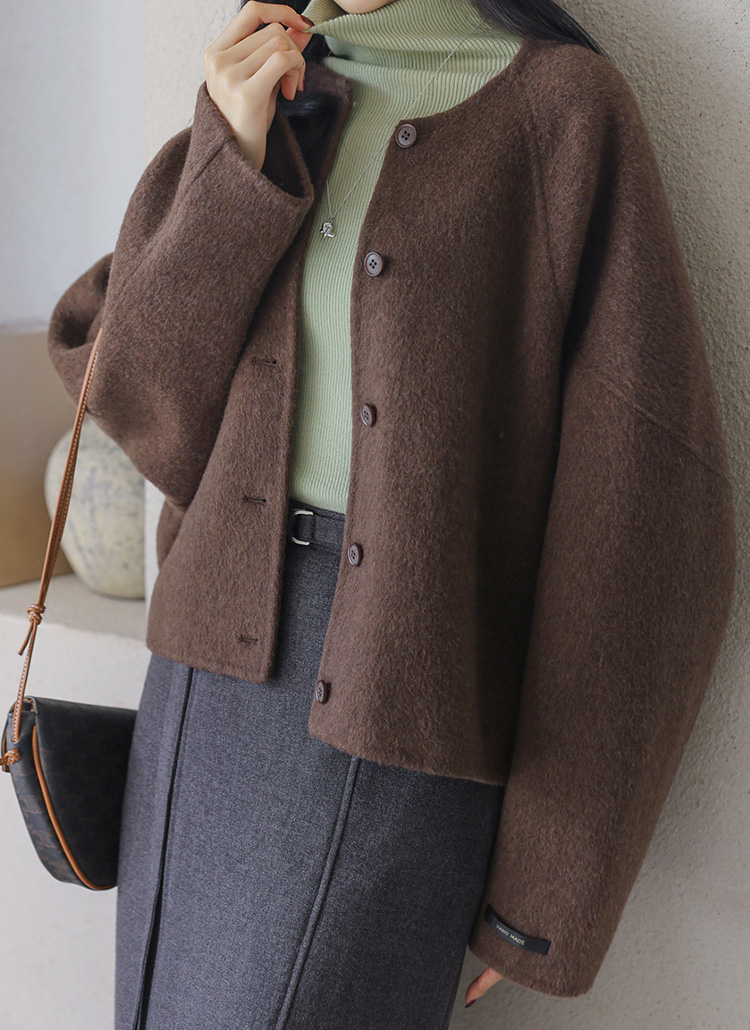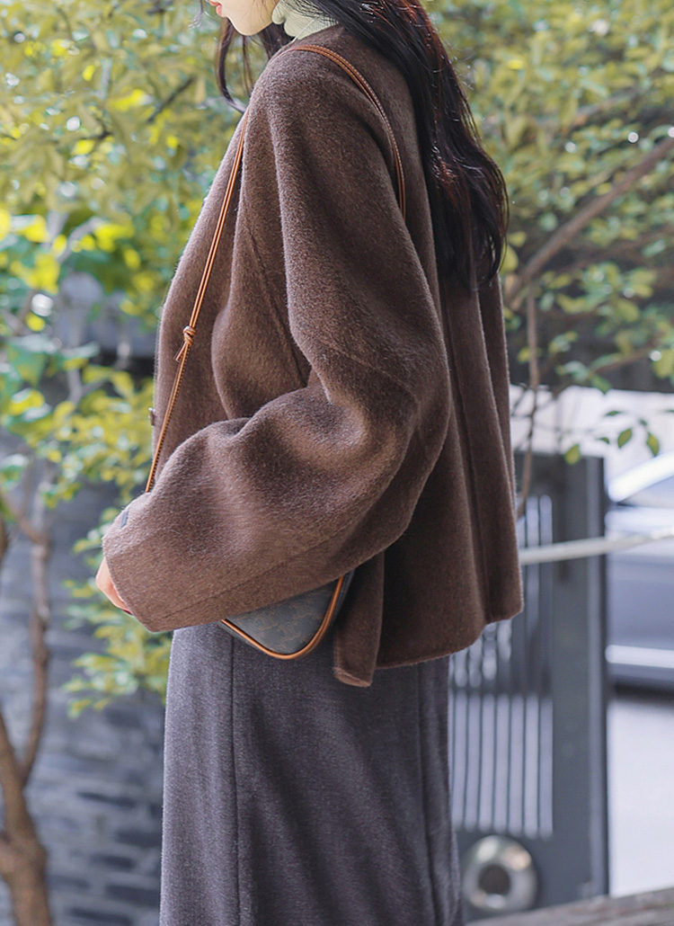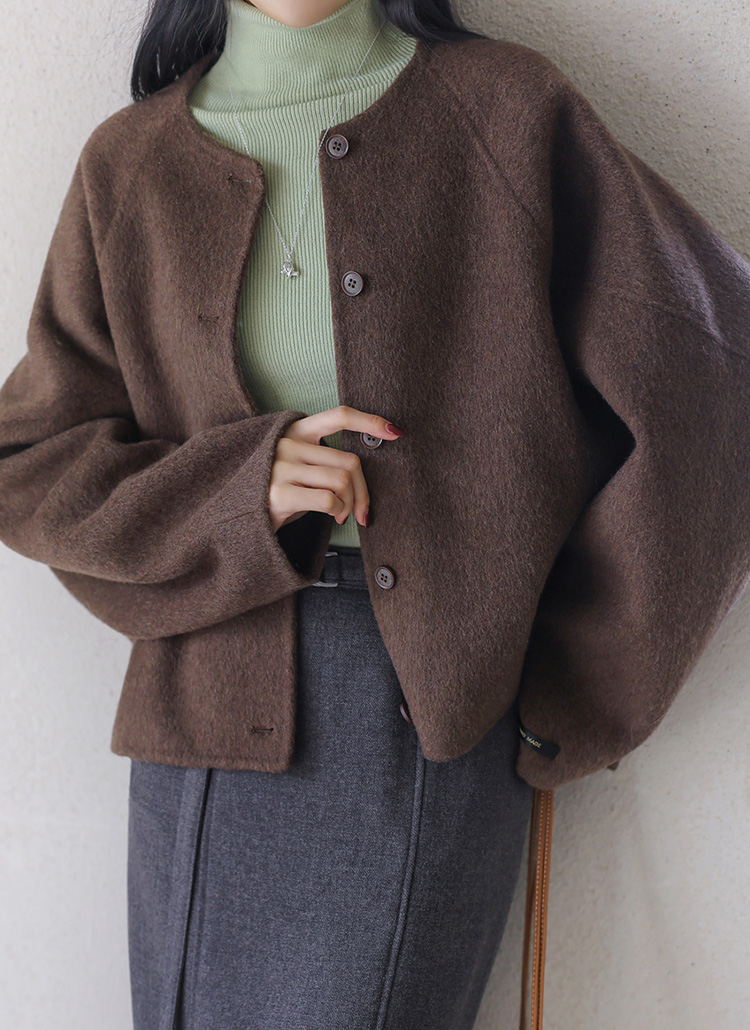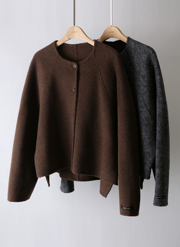 [Theonme] 로펜 알파카 울 블렌딩 루즈핏 언발 핸드메이드 자켓
