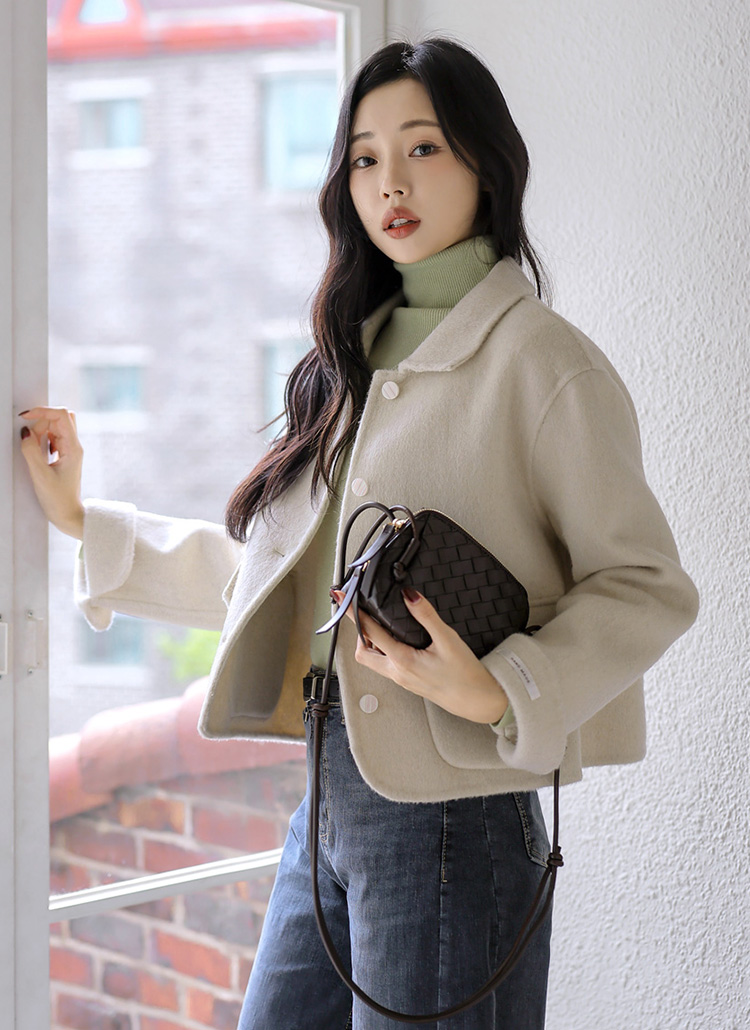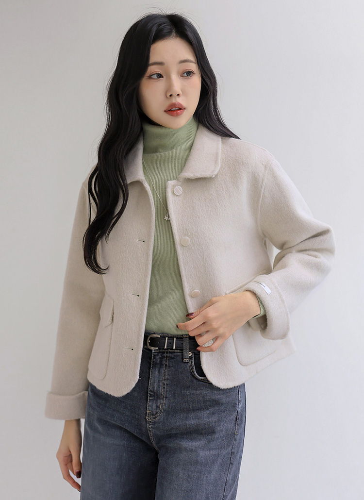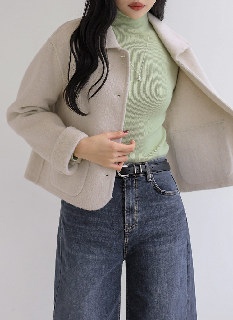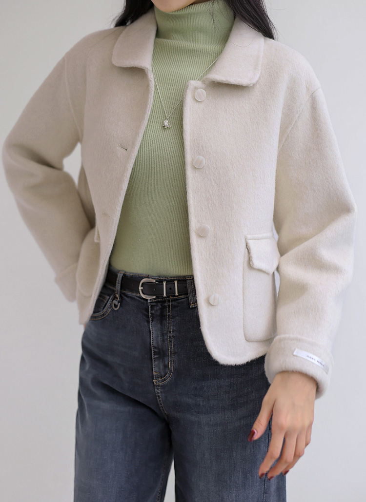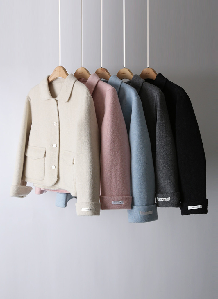 [Theonme] 퓨이델 울100 롤업소매 세미크롭 핸드메이드 자켓