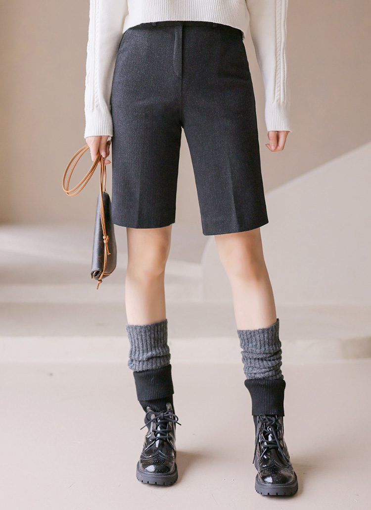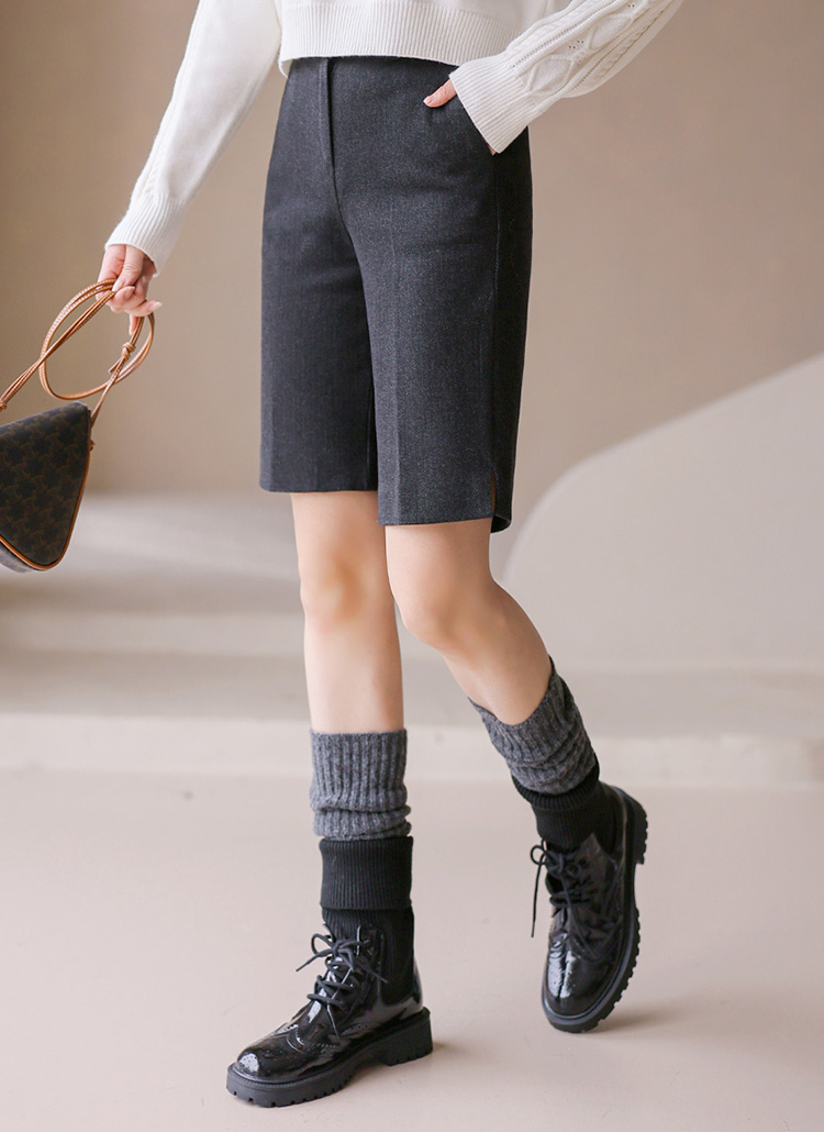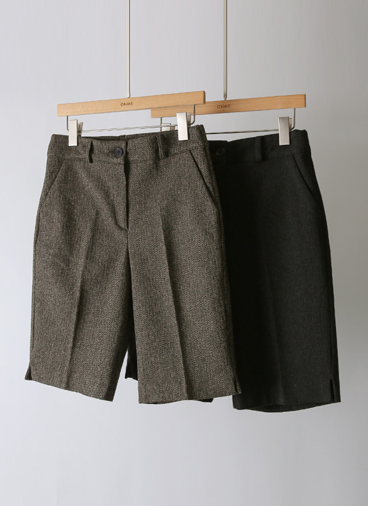 세비안 옆트임 헤링본 5부 반바지 슬랙스 팬츠