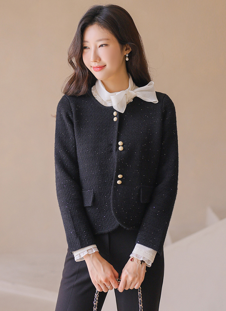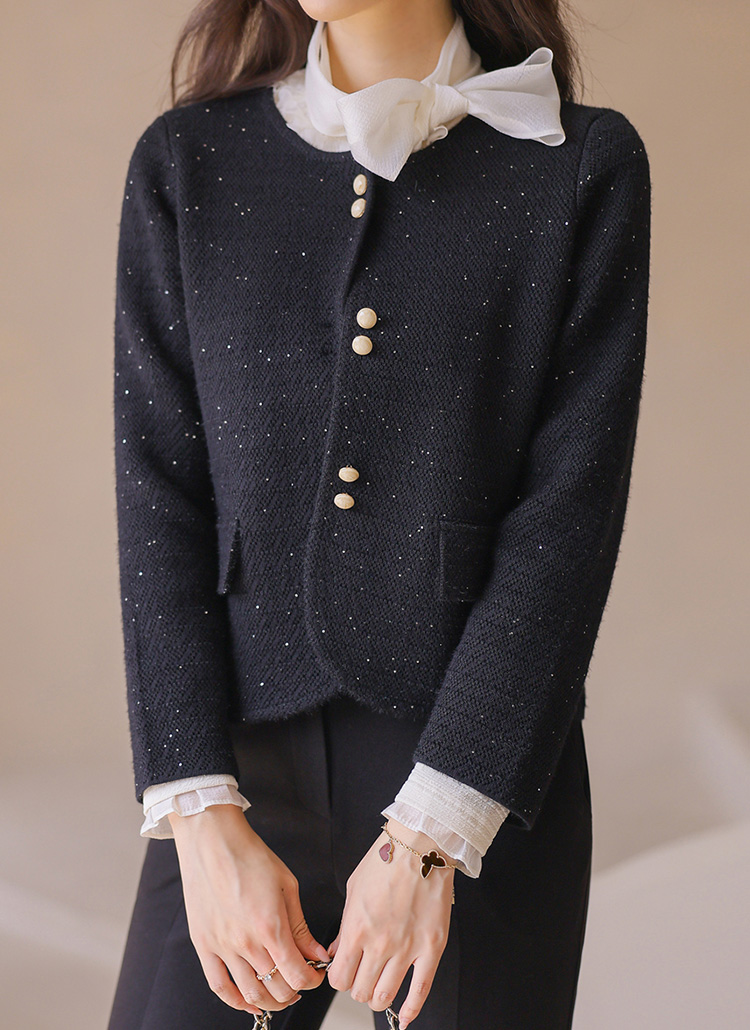 별빛 스팽글 믹스 날개사 니트 트윈 버튼 자켓 가디건