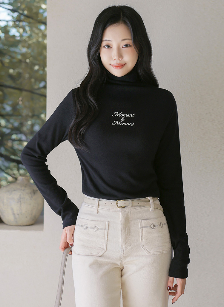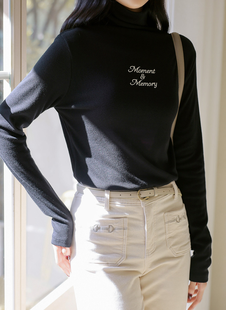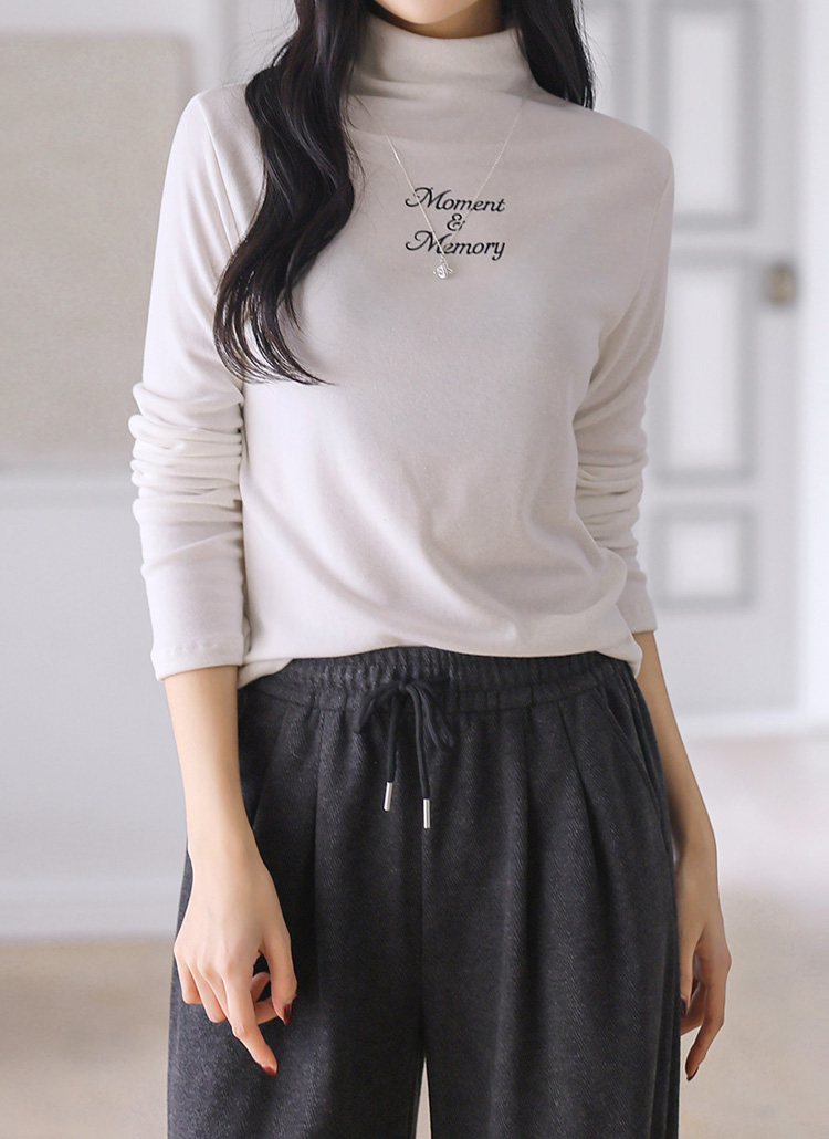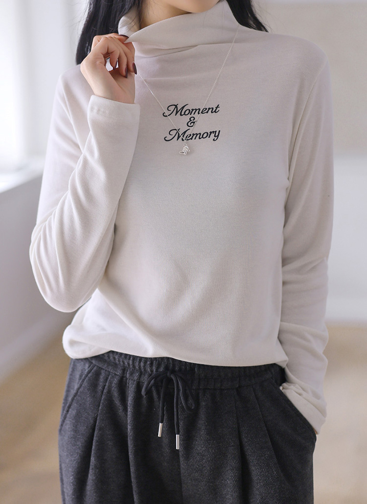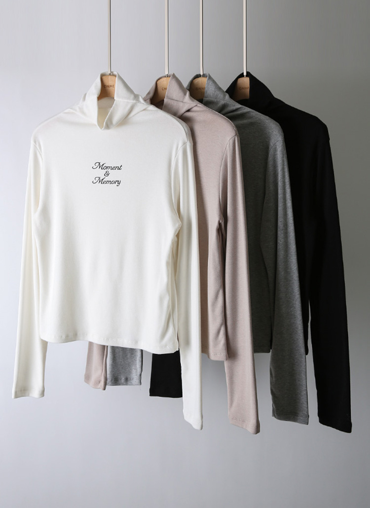 [Theonme] 모엔리 레터링 기모안감 스판 반목 폴라 티셔츠