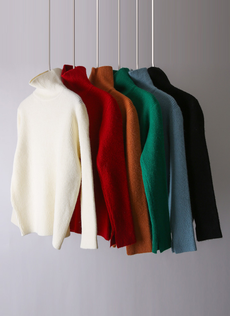 네티즈 살짝 여유있는 실루엣 포근포근 골지 폴라 니트