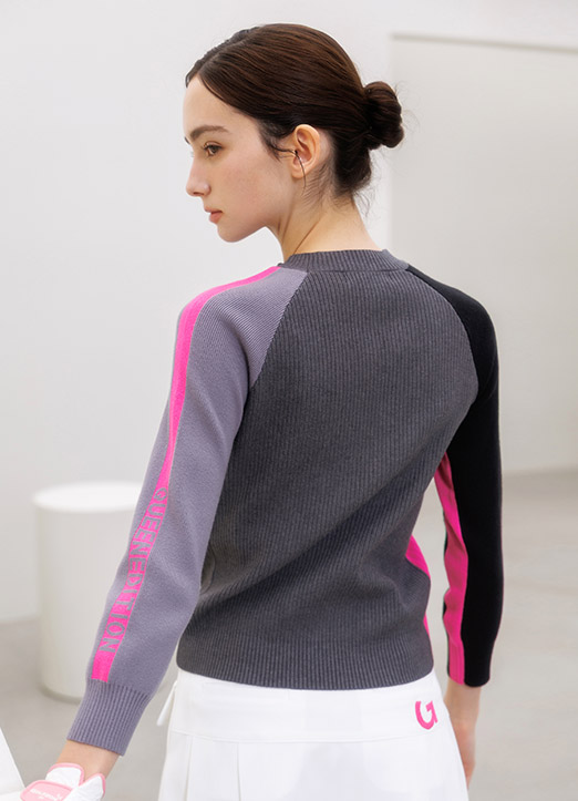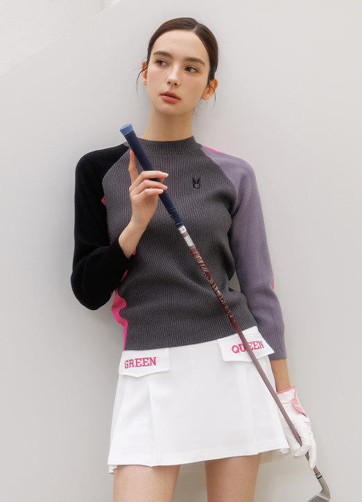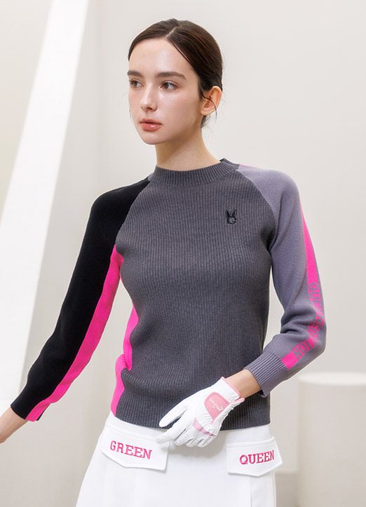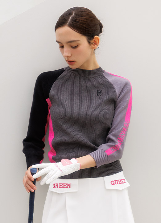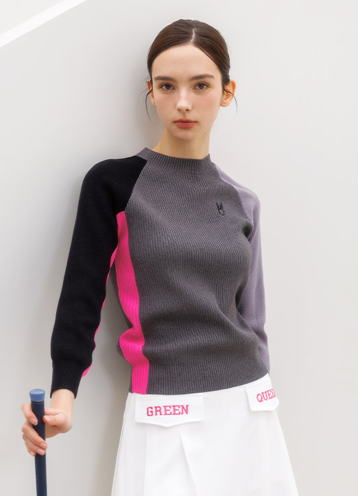 [QoG] 골프 7부 골지배색 라운드 니트