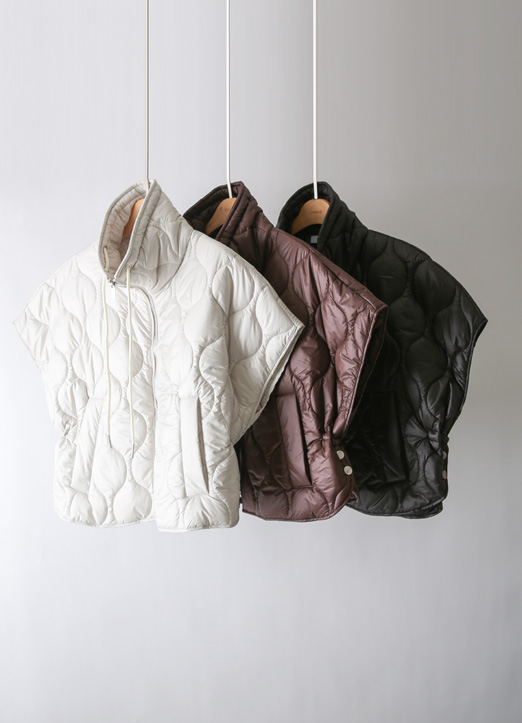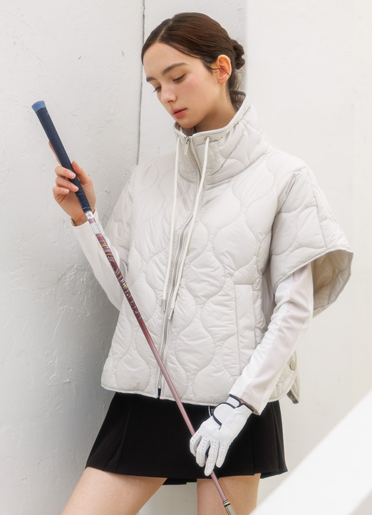 [QoG] 골프 버튼포인트 스트링 퀼팅 하이넥 판쵸_3color