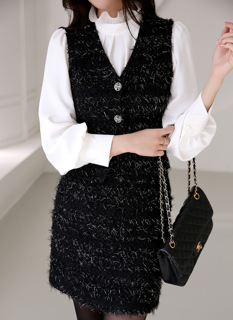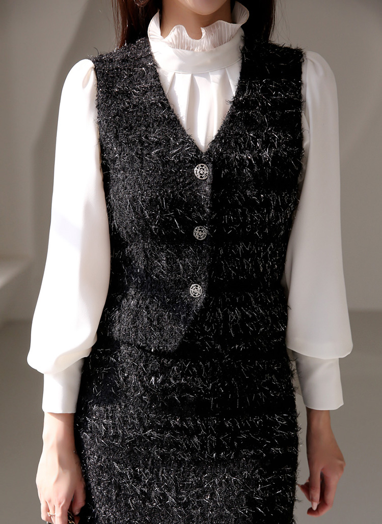[LouisAngel] 퓨디엘 펄 수술 울 블렌딩 브이넥 페미닌 조끼 베스트