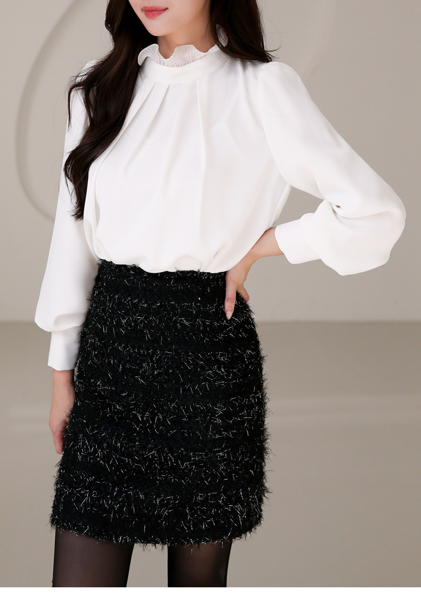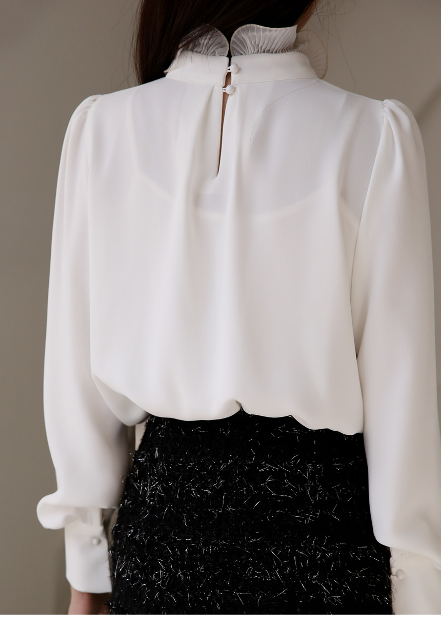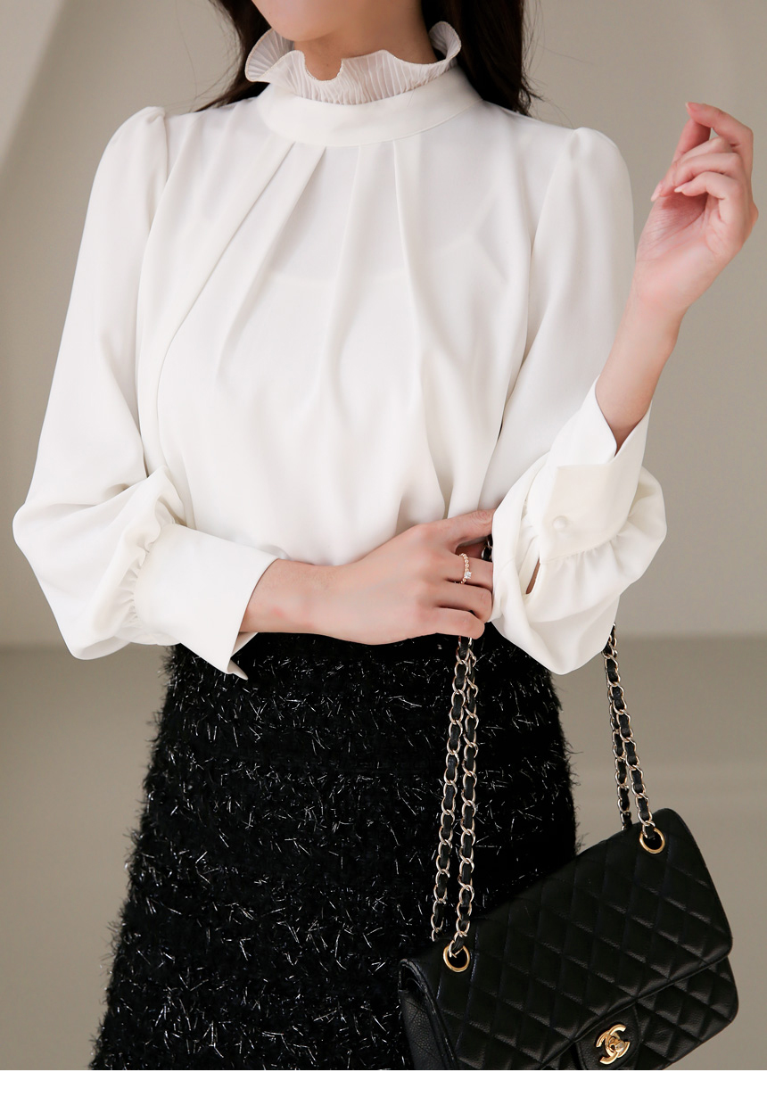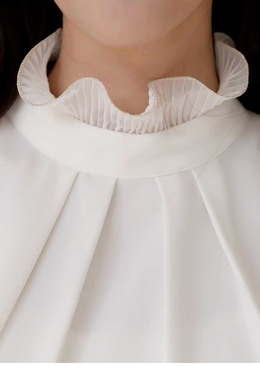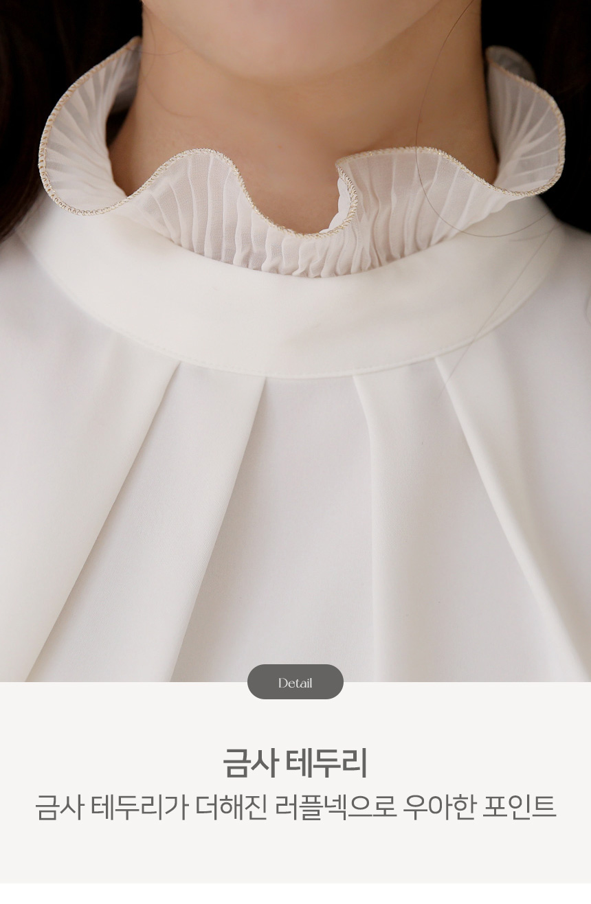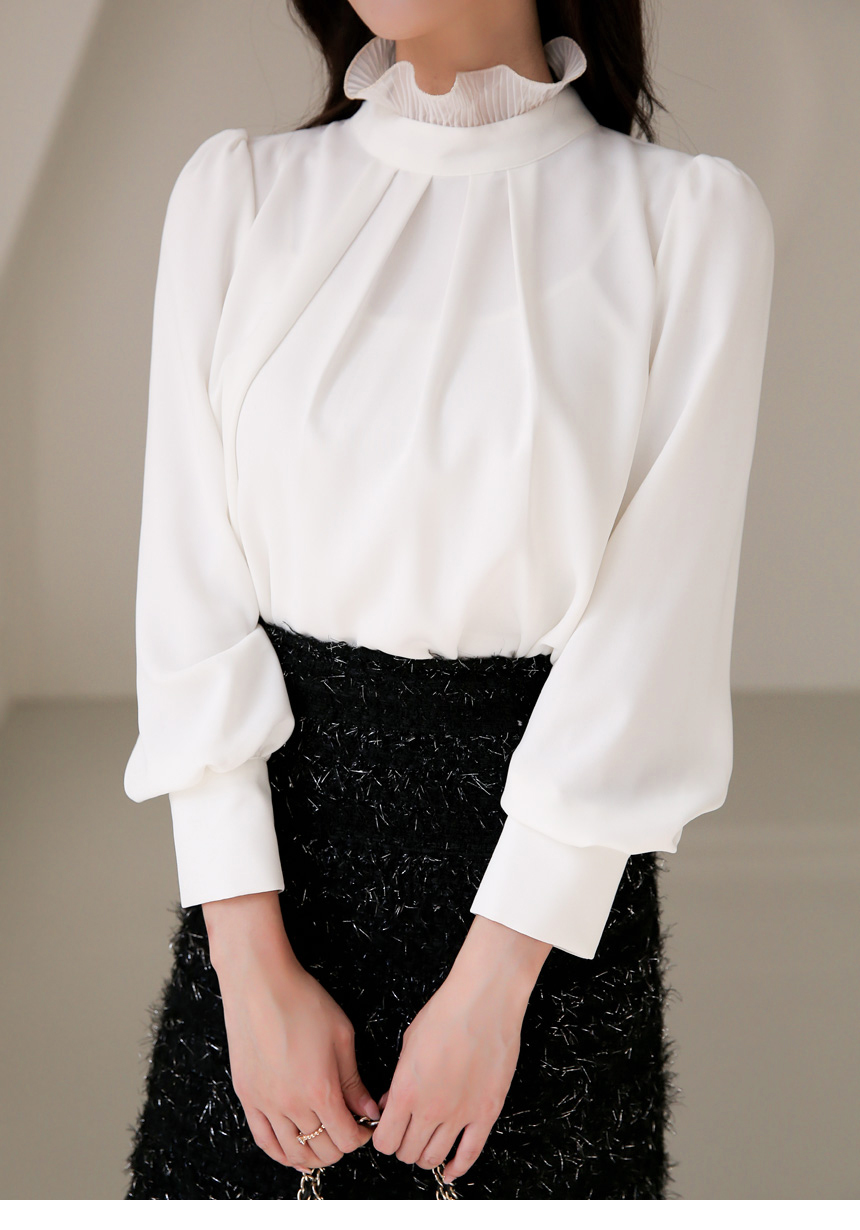 루이셀 우아한 플리츠 러플넥 볼륨 퍼프소매 핀턱 블라우스