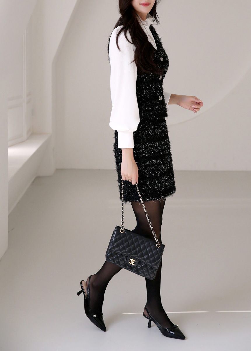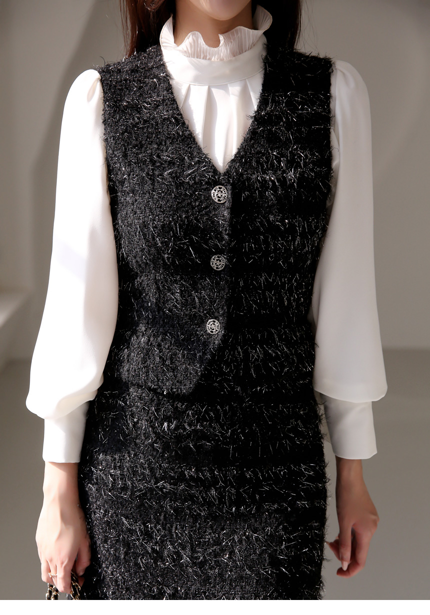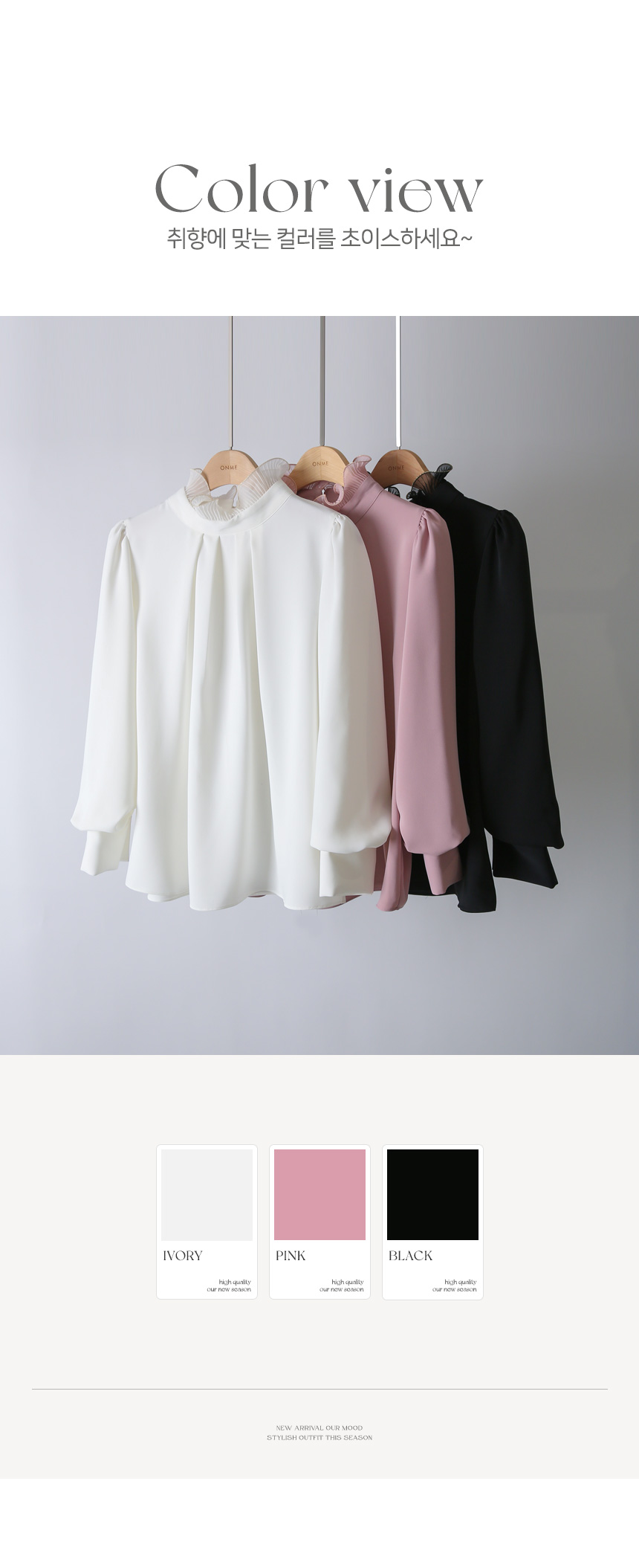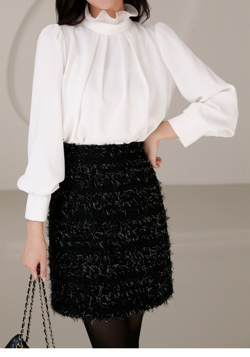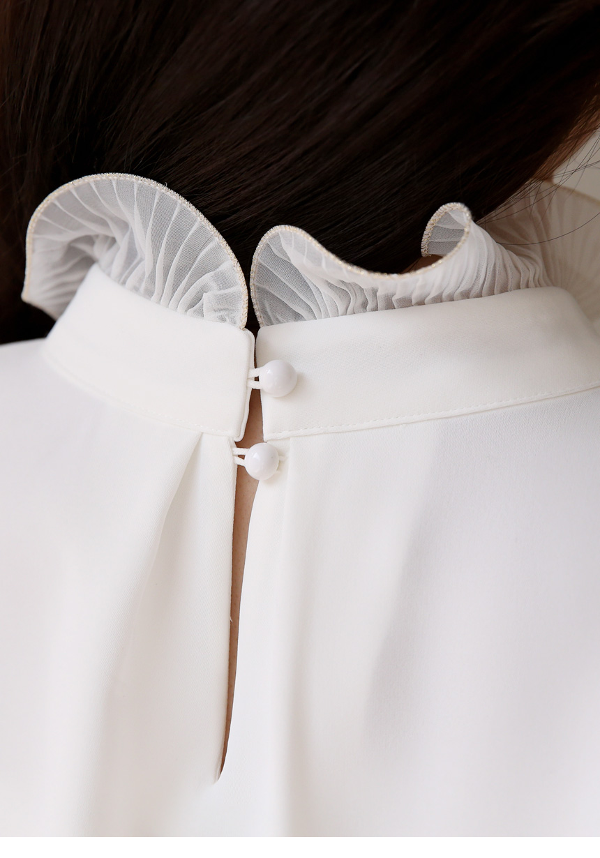 루이셀 우아한 플리츠 러플넥 볼륨 퍼프소매 핀턱 블라우스