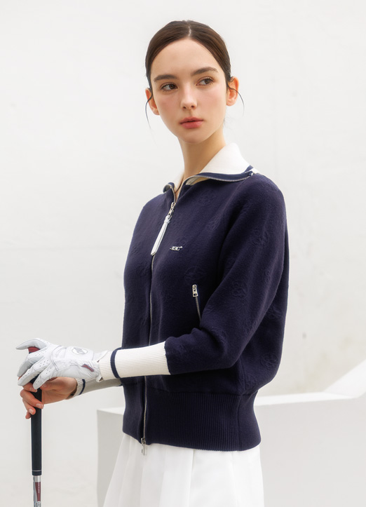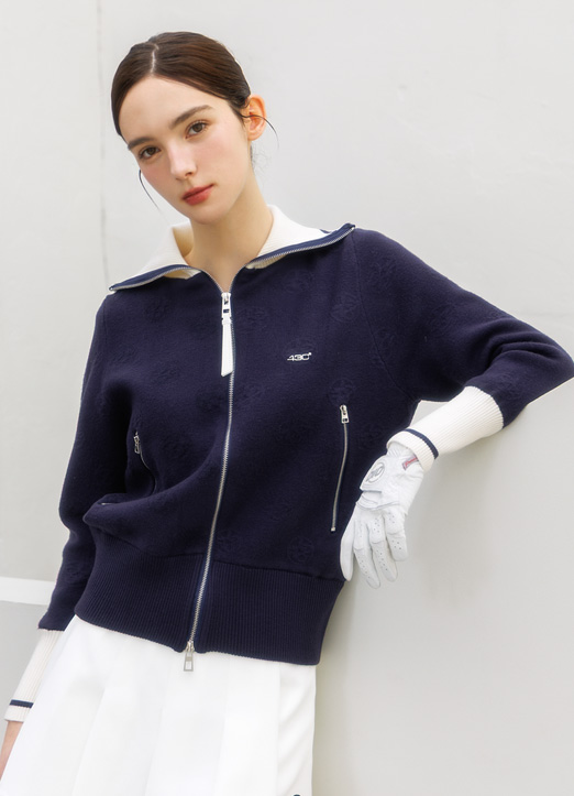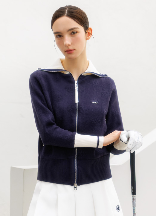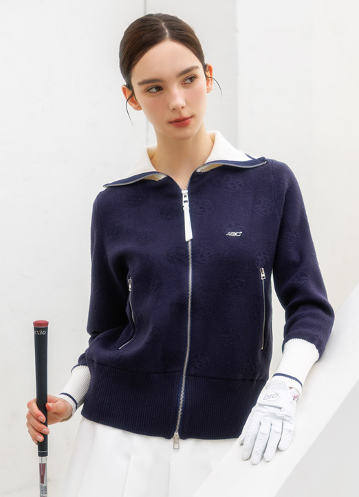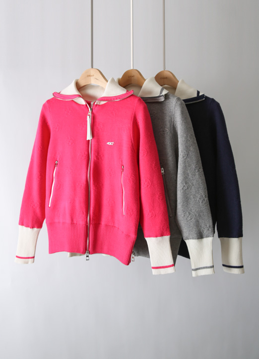[QoG] 골프 자가드 배색 하이넥 울 집업 가디건_3color