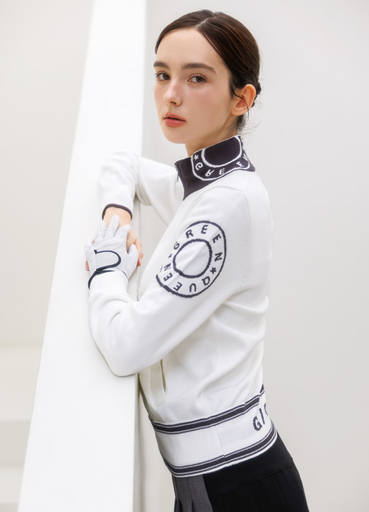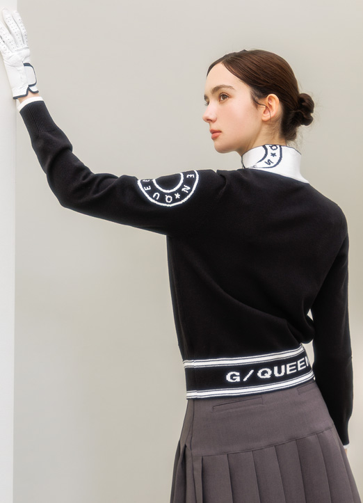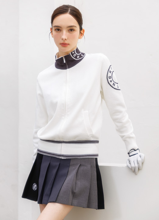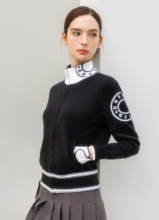 [QoG] 골프 하이넥 배색 스타 집업 니트 가디건_2color
