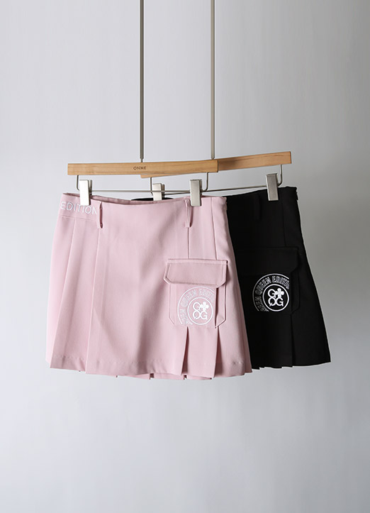 [QoG] 골프 아웃포켓 자수 맞주름 스커트_2color