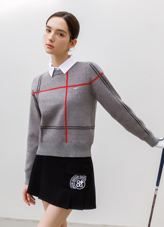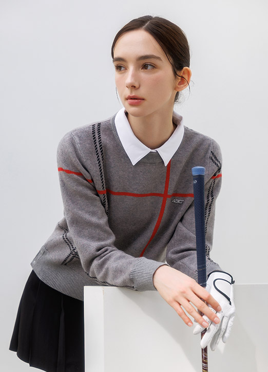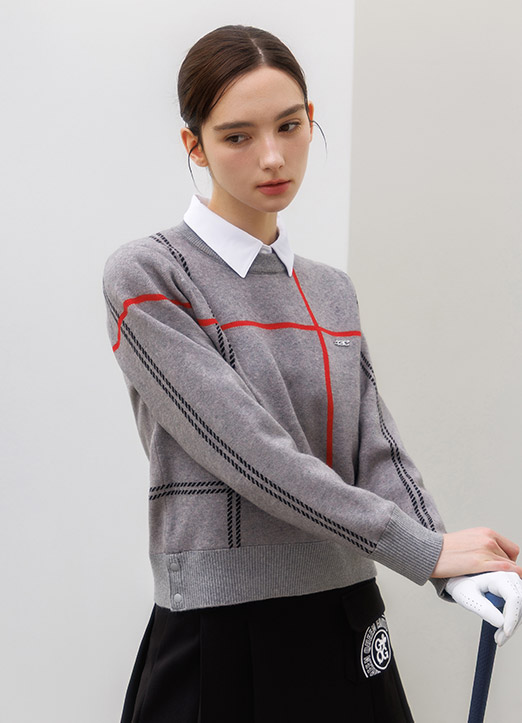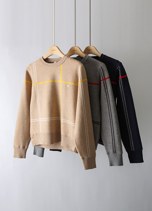 [QoG] 골프 배색 라인 울 라운드 니트_3color
