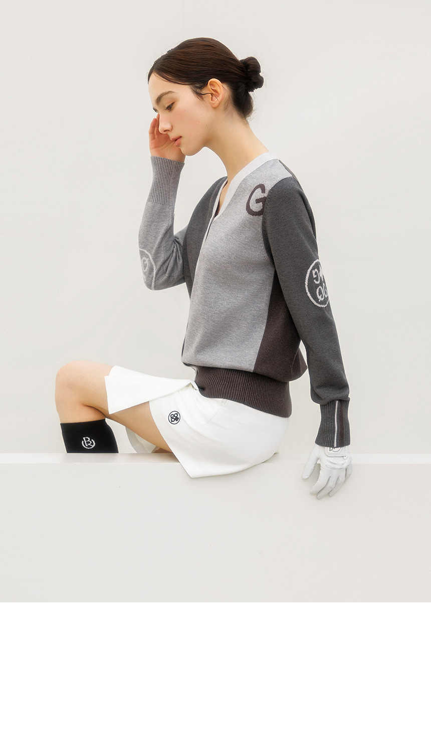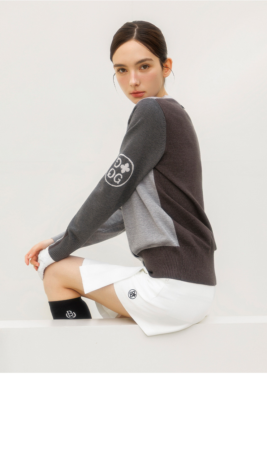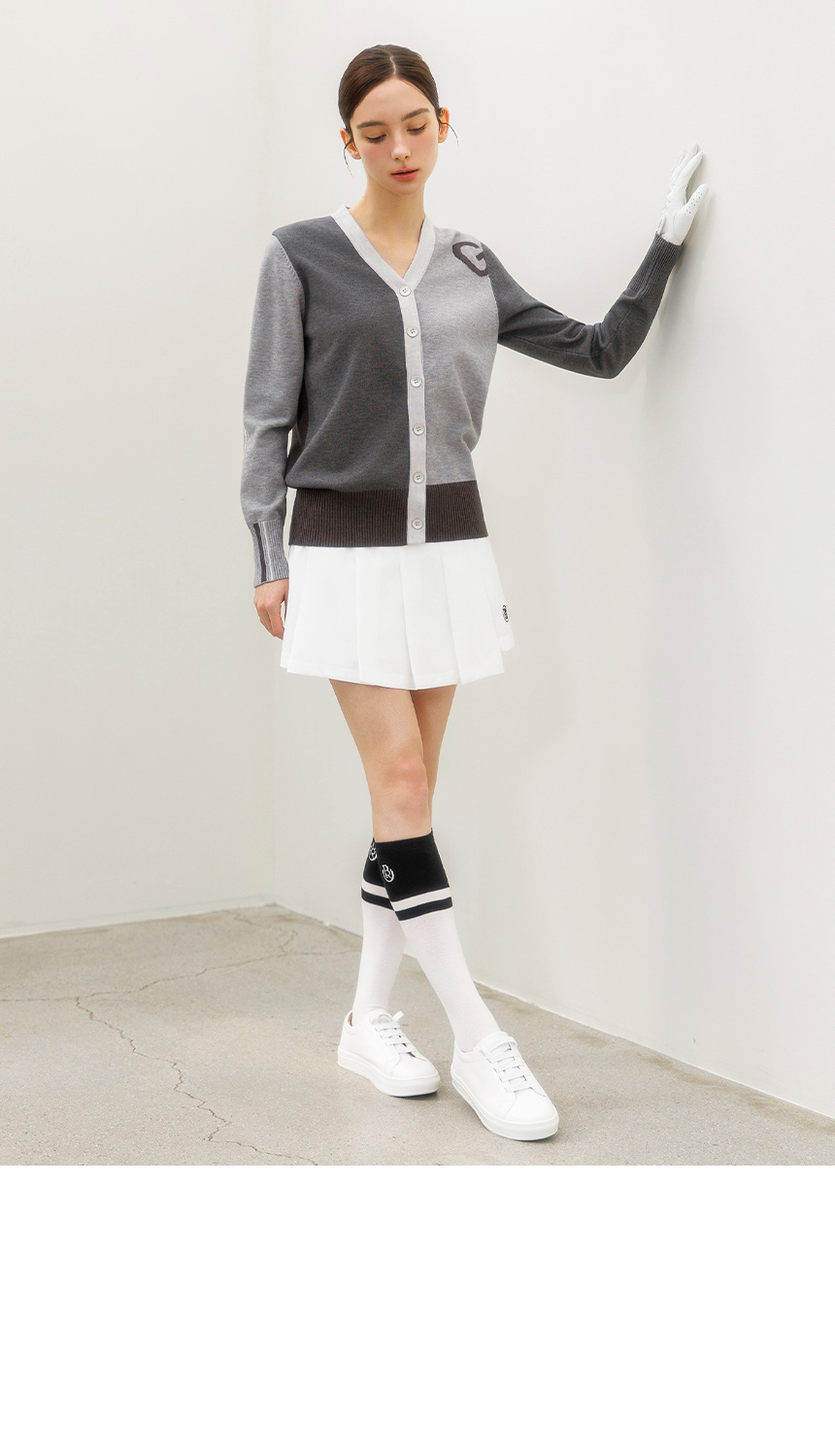 [QoG] 골프 G배색 V넥 니트 가디건