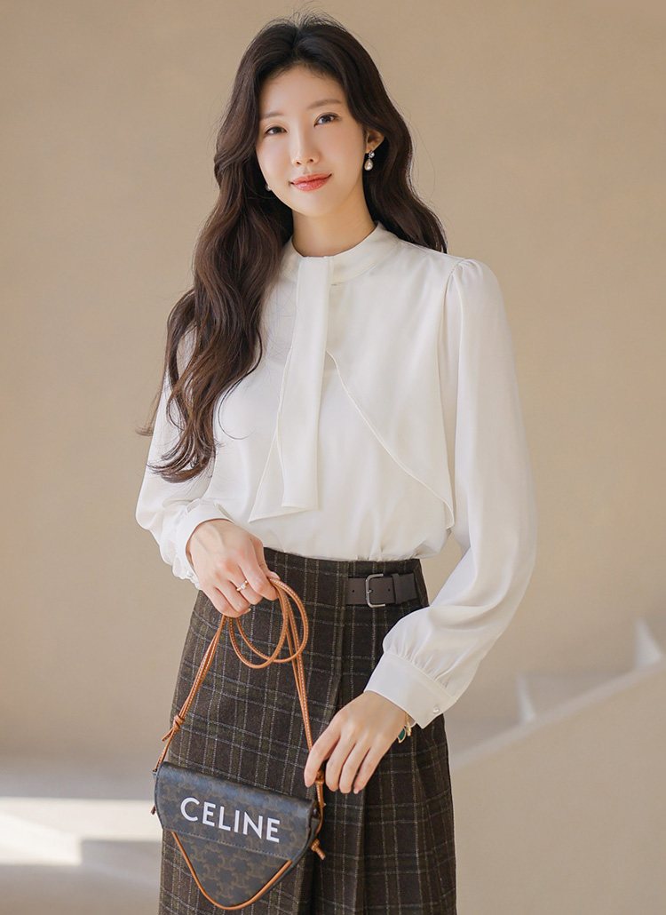 자연스럽게 떨어지는 리본 디테일이 우아하면서도 단아한 무드를 선사하는 블라우스에요