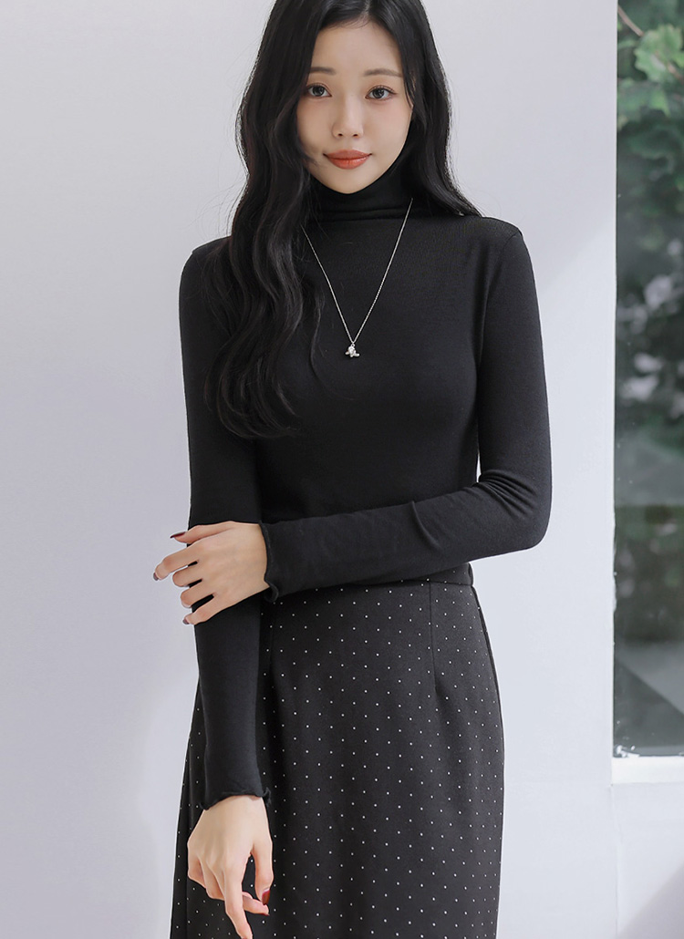 [Theonme] 프롤디 러플 돌돌이 슬림 스판 반목 폴라 티셔츠