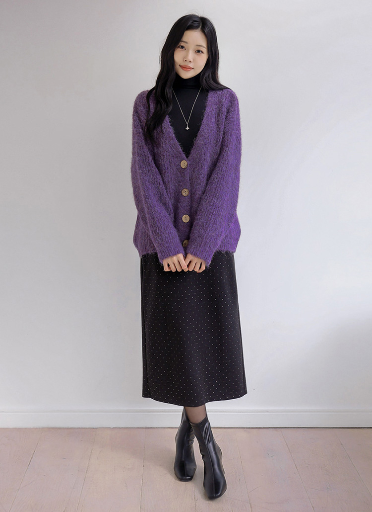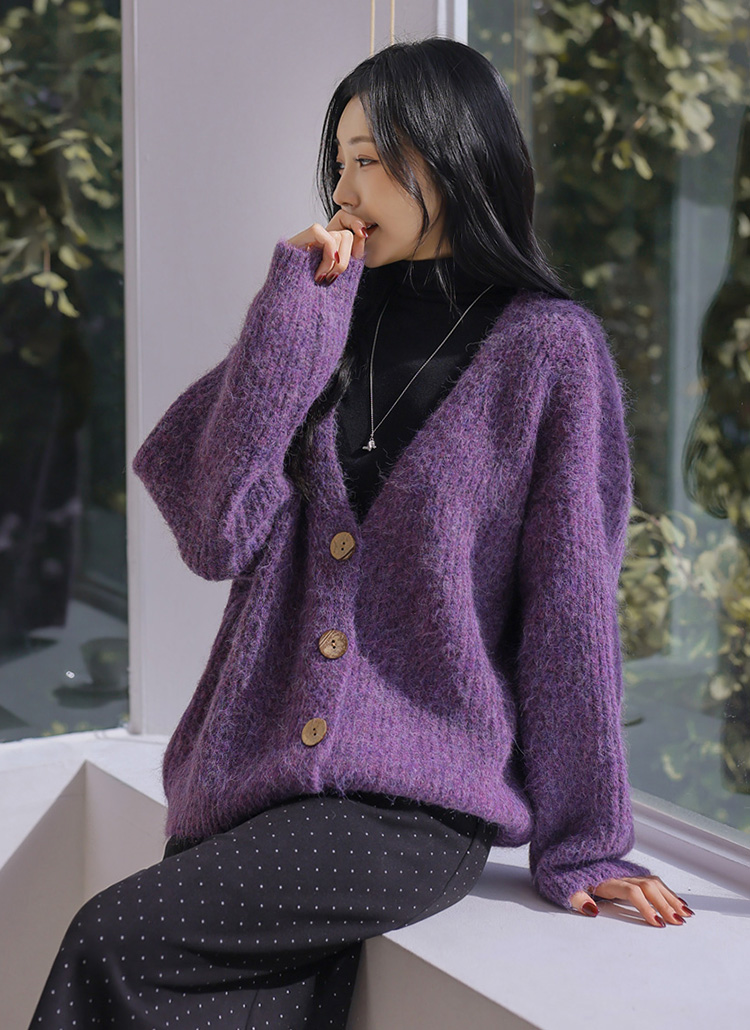 퍼지한 텍스처의 브이넥 버튼 가디건이에요 :)
