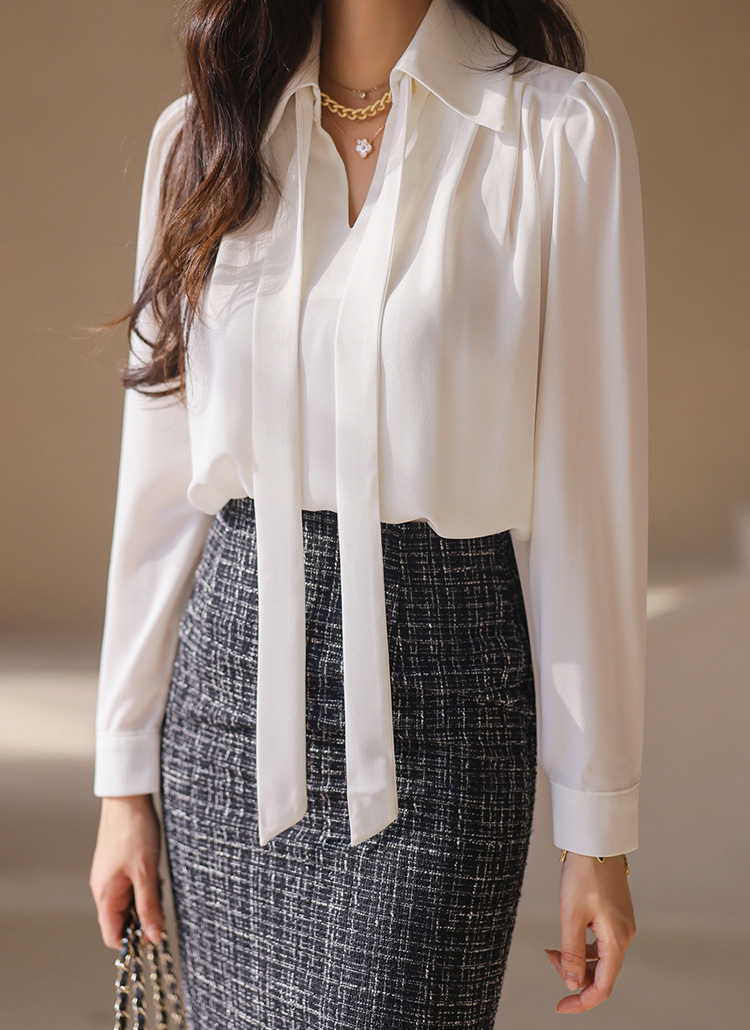 아이빈 골드 체인 리본 SET 카라 셔링 블라우스