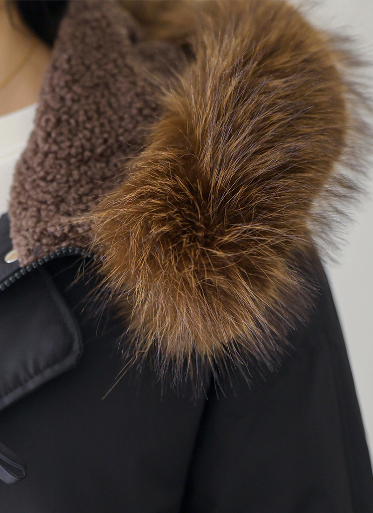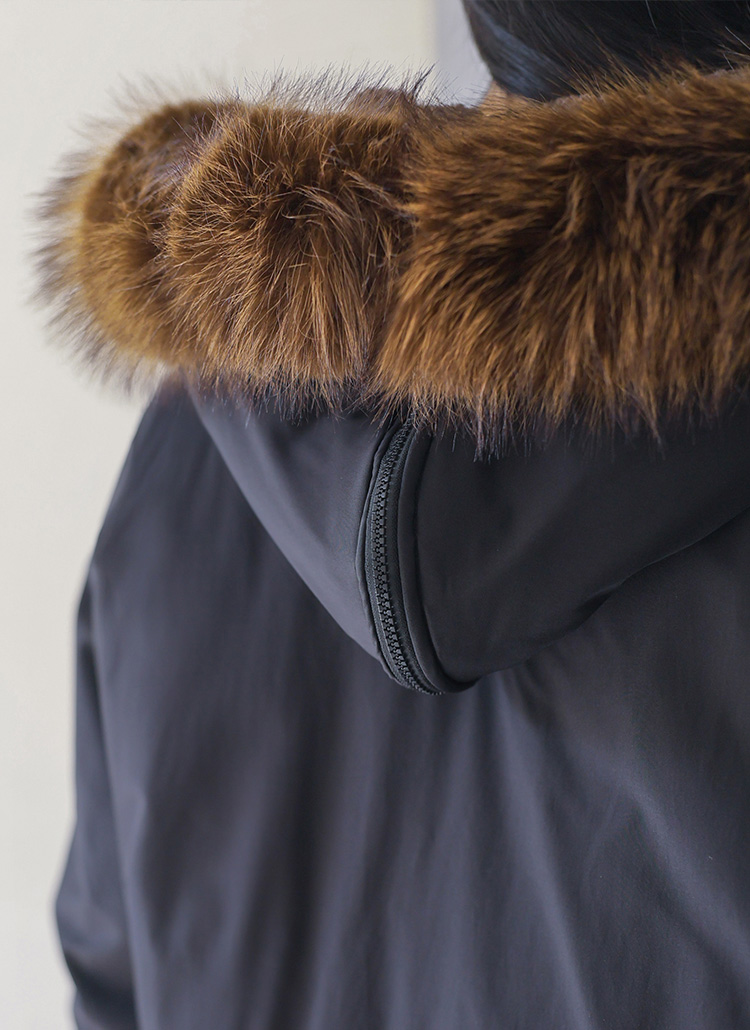 부드러운 뽀글이 안감과 퍼 후드가 포근한 착용감을 선사한답니다~