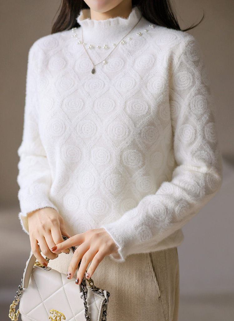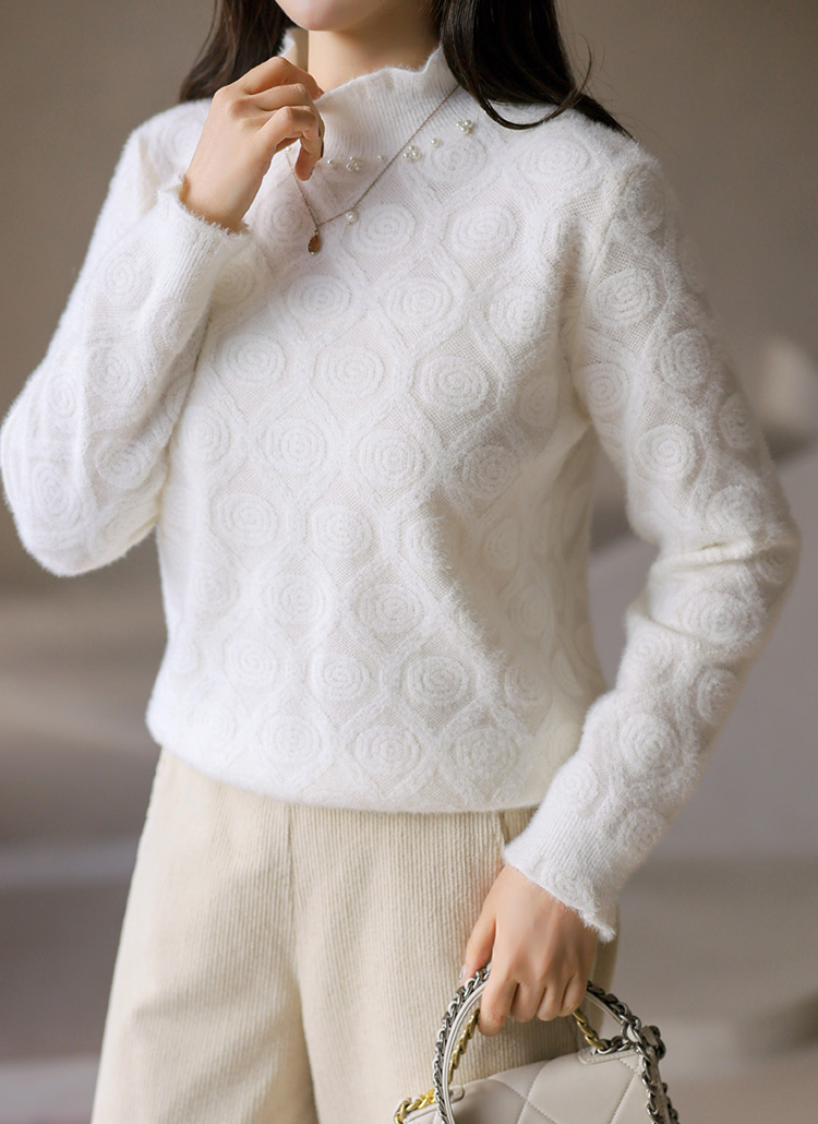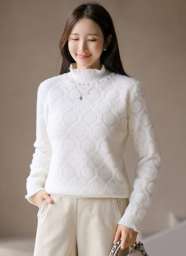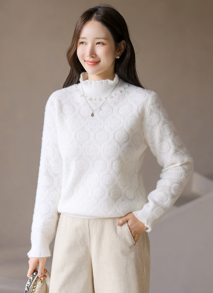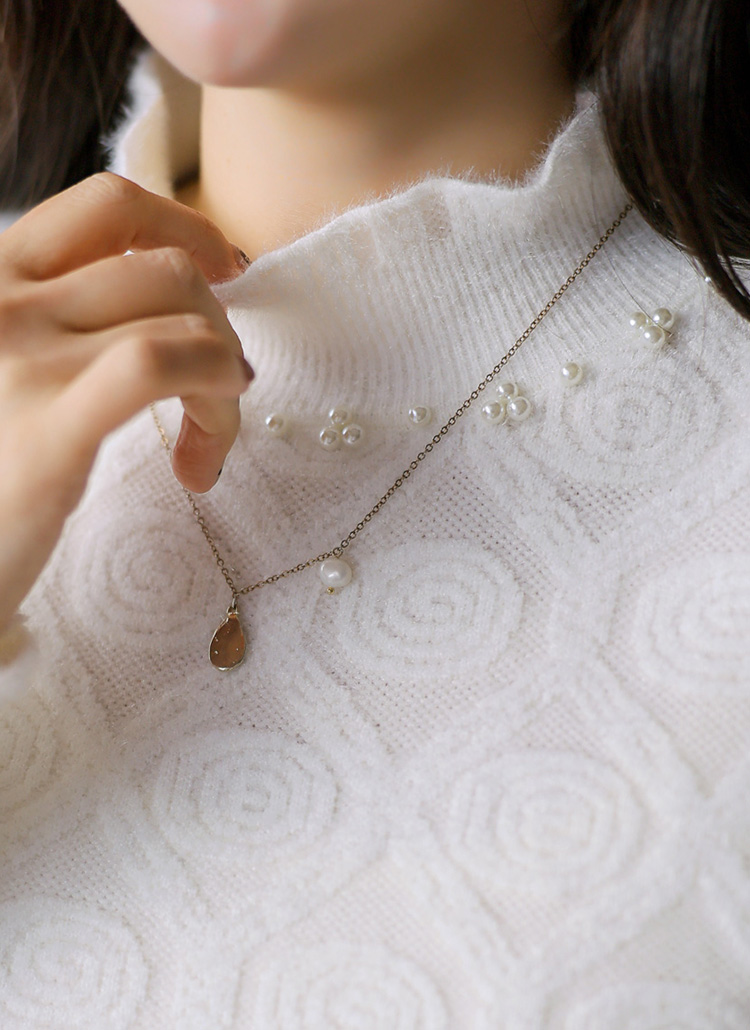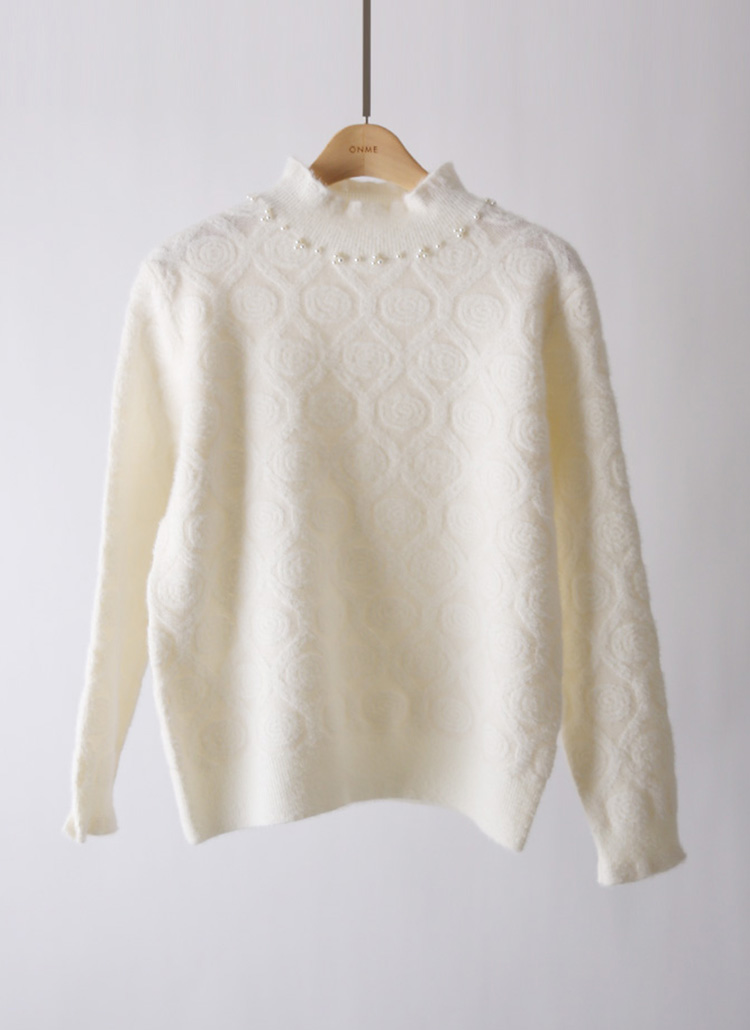 로지즈 쟈가드 진주 포인트 포근 날개사 반하이넥 니트
