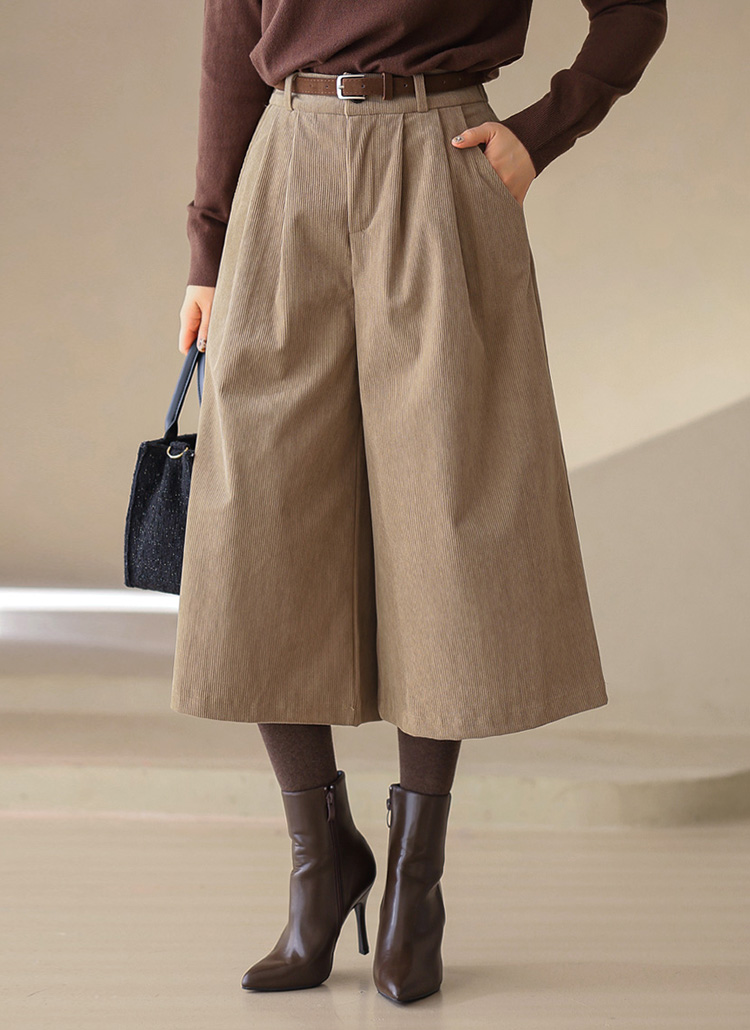 베이들 벨트 SET 투핀턱 포근 코듀로이 8부 와이드 팬츠