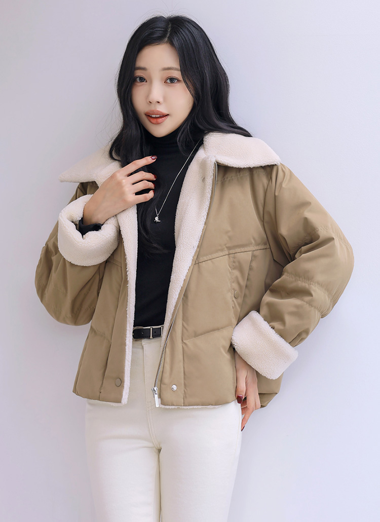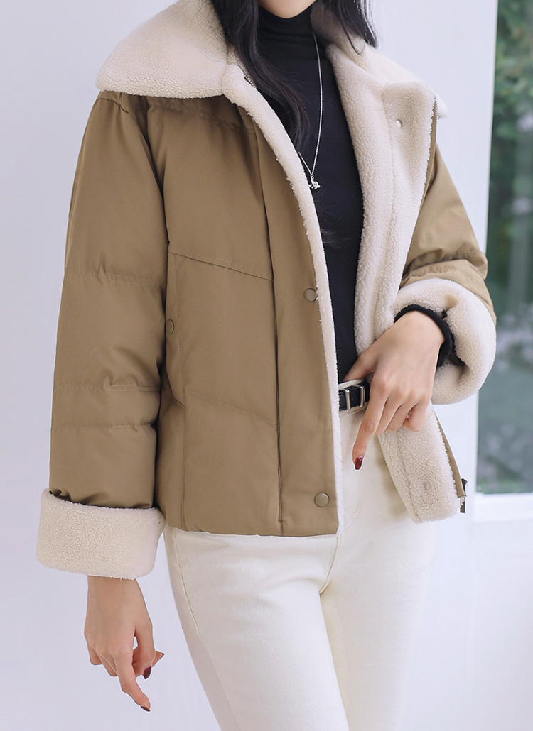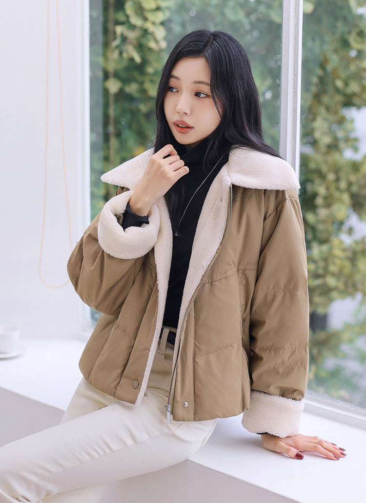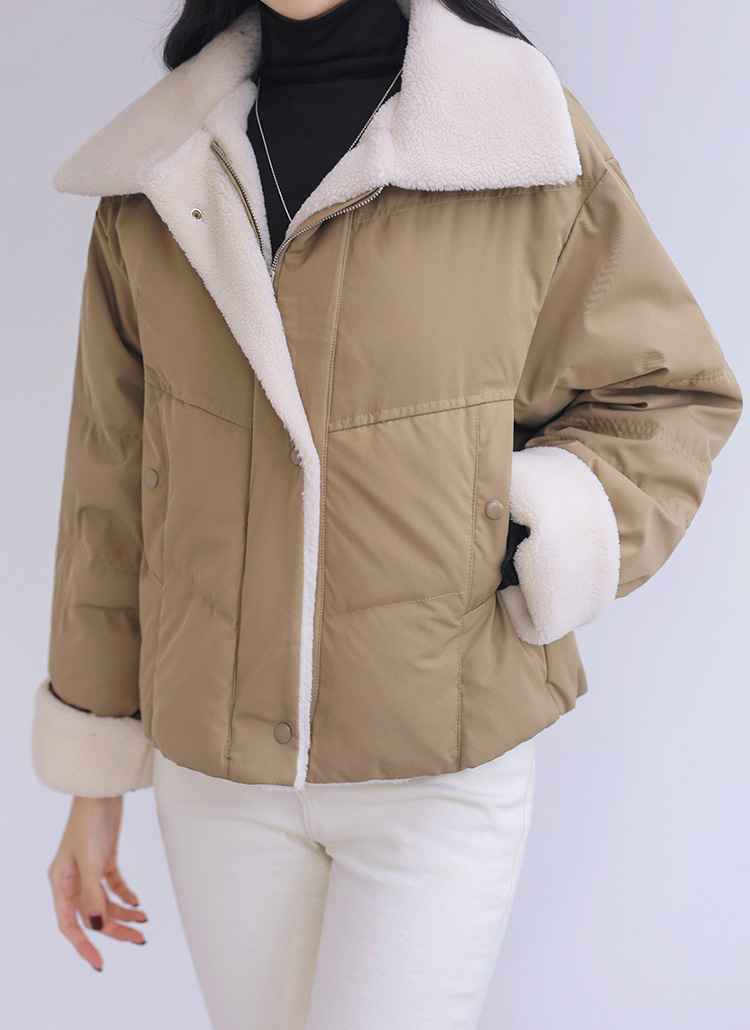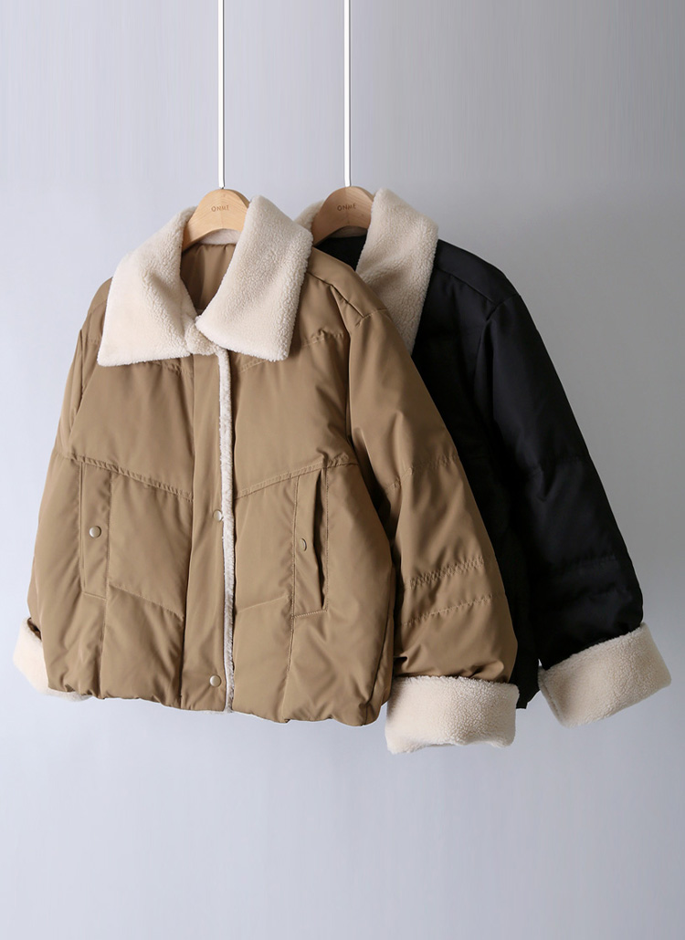 [Theonme] 보르덴 뽀글 퍼 안감 롤업 소매 카라 패딩 점퍼