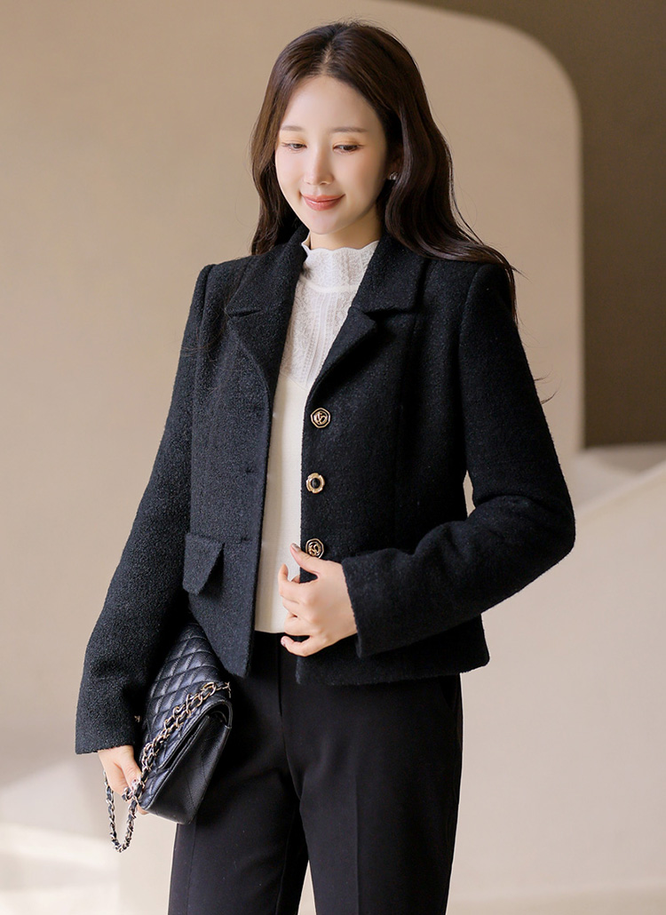 [LouisAngel] 러비드 포근 울 블렌딩 부클 세미 크롭 테일러드 카라 자켓