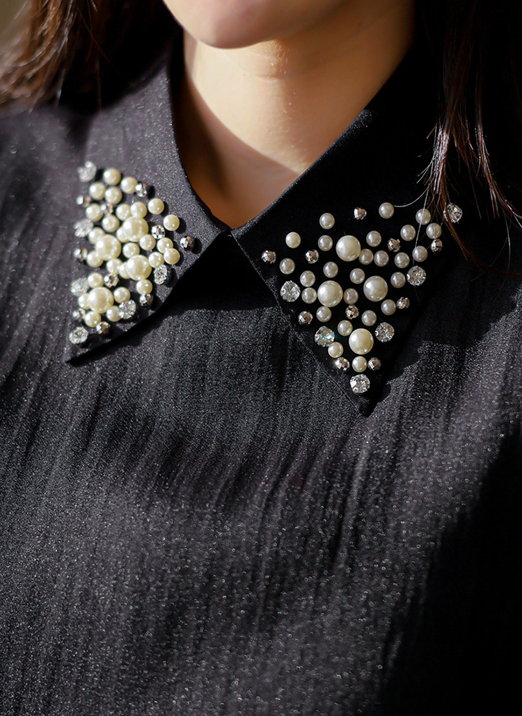 진주와 큐빅 비즈 장식이 가득한 카라가
