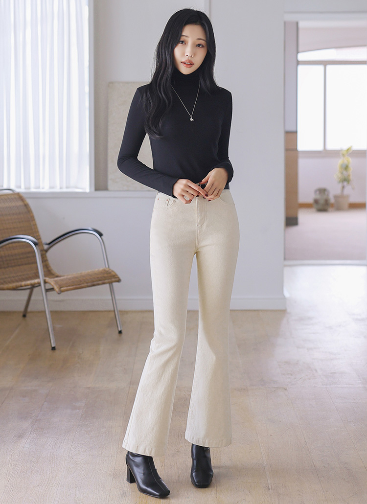 데일리하게 즐기기 좋은 기모 스판 부츠컷 코튼 팬츠예요 :)